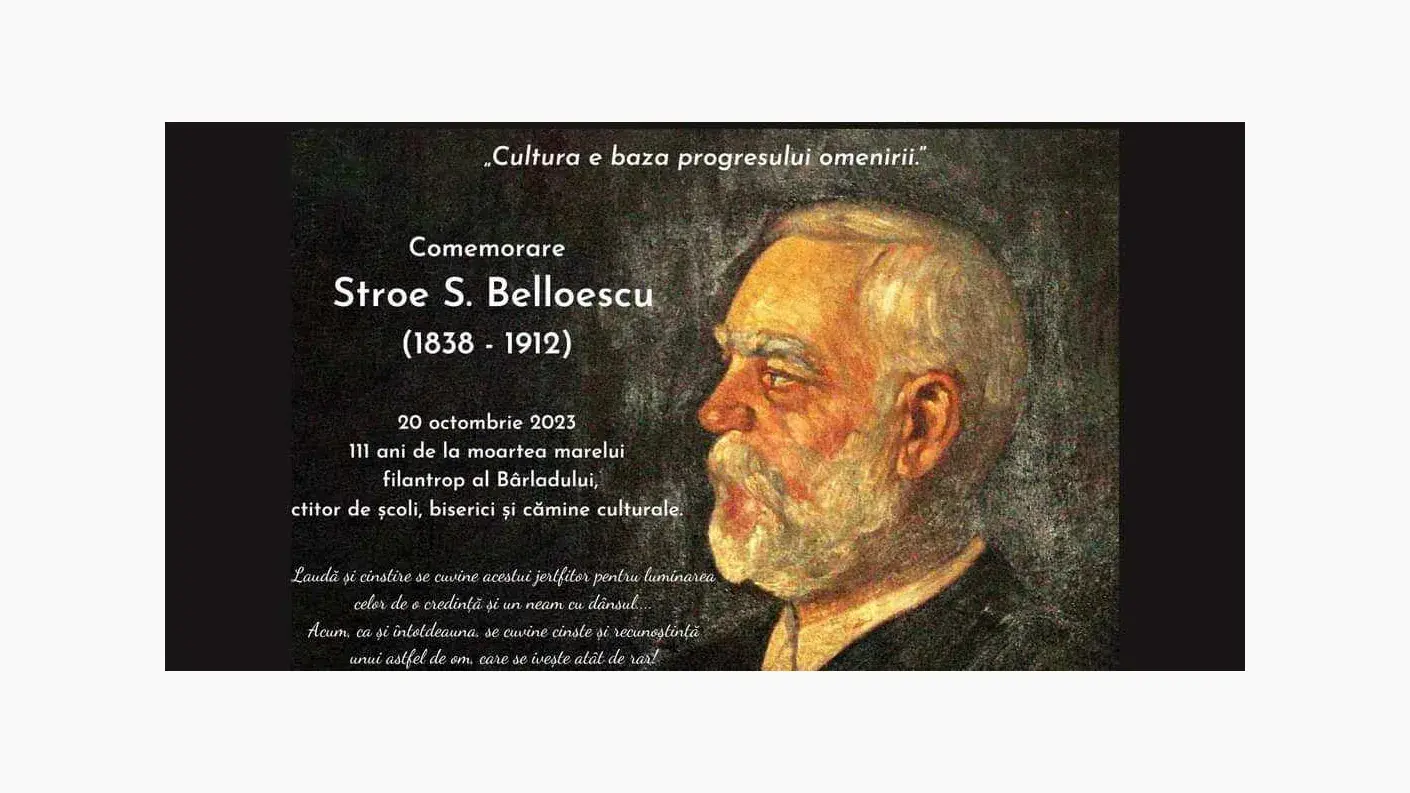Vineri, 20 octombrie 2023, s-au împlinit 111 ani de la trecerea la cele veșnice a marelui filantrop al Bârladului, ctitor de școli, biserici și cămine culturale, Stroe S. Belloescu.