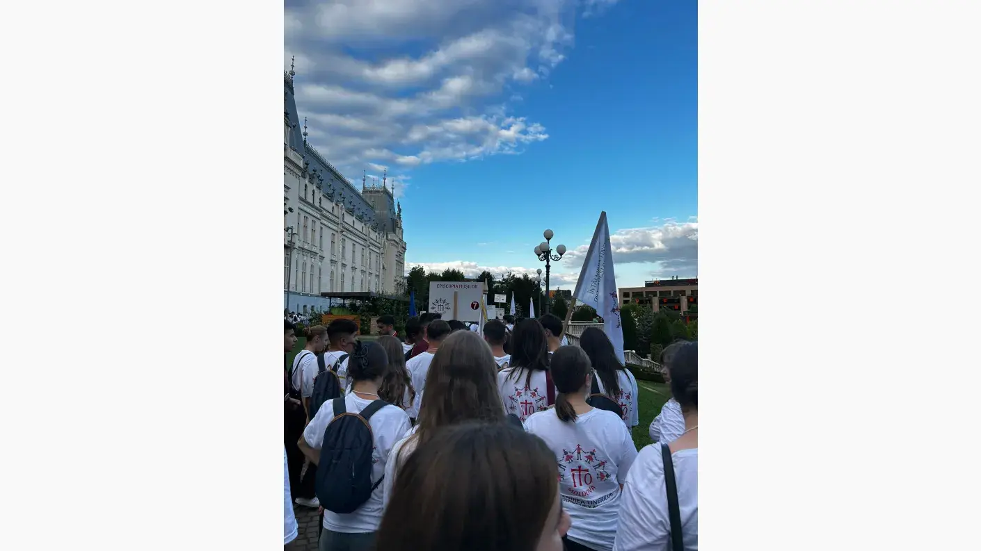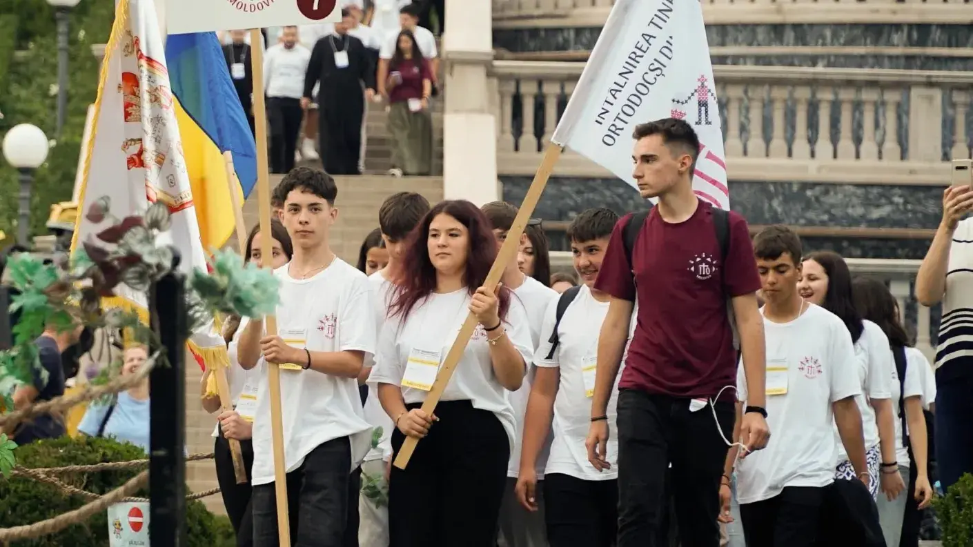 În continuare, voluntarii ITOM au defilat în fața participanților cu steaguri și pancarte, iar la final, tinerii au realizat o fotografie de grup împreună cu părintele mitropolit și soborul slujitor, în fața Catedralei. Din partea fiecărui grup participant, din Eparhiile Moldovei, a luat cuvântul câte un tânăr reprezentant.