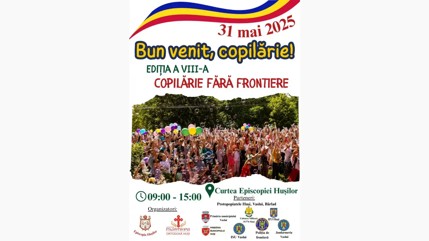 Pe 31 mai 2025, la Catedrala Episcopală din Huși, deschidem porțile celei de-a VIII-a ediții a evenimentului „Bun venit, copilărie!” – o zi dedicată celor mai curate suflete: copiii.