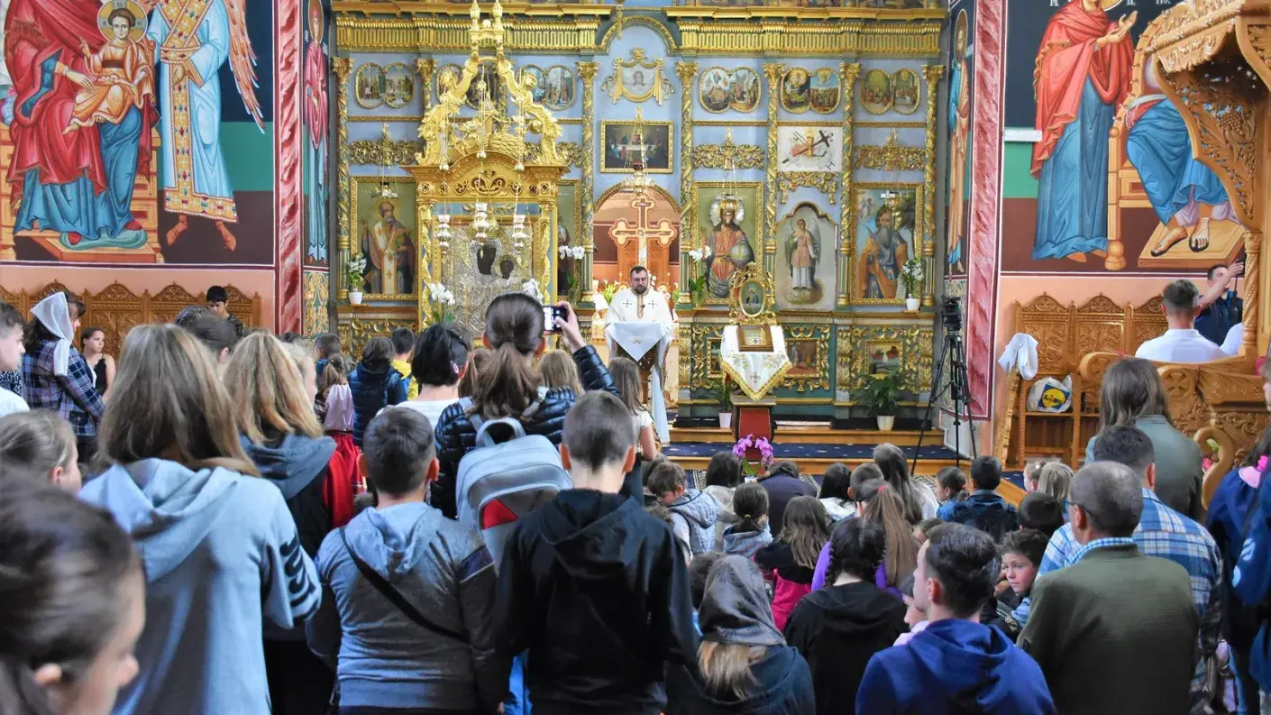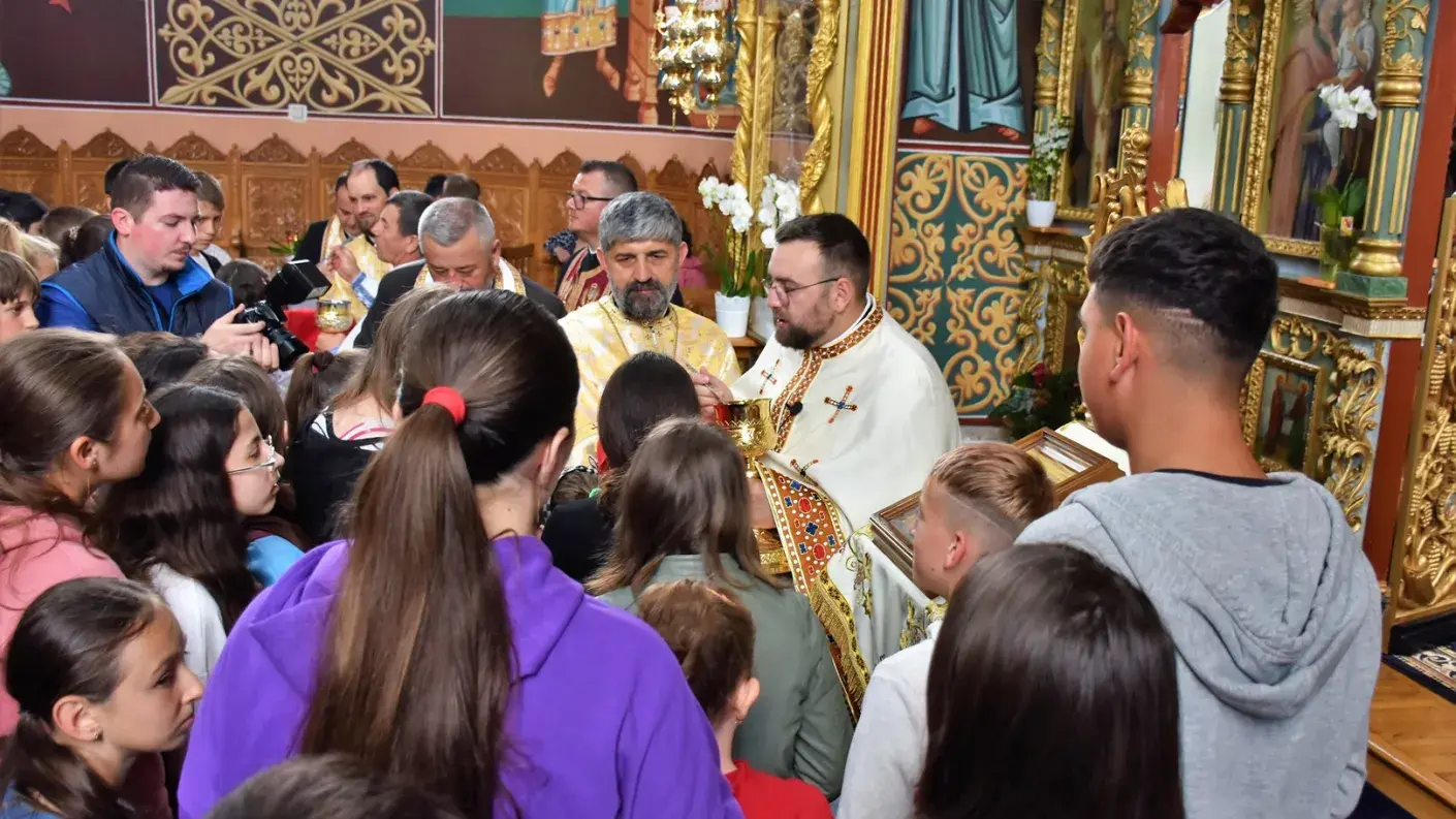 Ziua a început cu slujba Sfintei Liturghii, la care au participat părintele consilier eparhial Marian Dumitru Rugină, părinții protopopi Vasile Lăiu și Marius Antohi, alături de preoții parohi implicați în proiect. Mare parte din cei 350 de copii participanți s-au împărtășit cu Sfintele Taine.