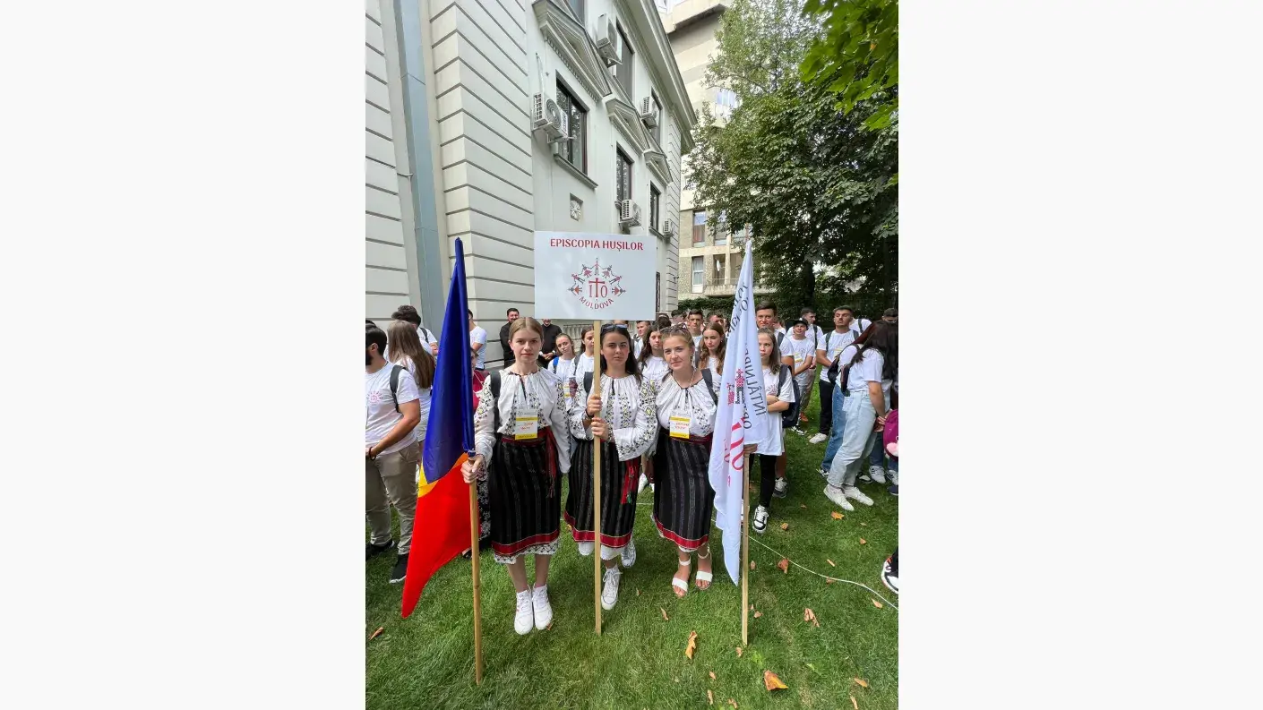 În continuare, voluntarii ITOM au defilat în fața participanților cu steaguri și pancarte, iar la final, tinerii au realizat o fotografie de grup împreună cu cei doi ierarhi și soborul slujitor, în fața Catedralei. Din partea fiecărui grup participant, din Eparhiile Moldovei, a luat cuvântul câte un tânăr reprezentant. Din partea Episcopiei Hușilor a vorbit tânăra Ioana Boicu, din Parohia Văleni, Protopopiatul Vaslui.