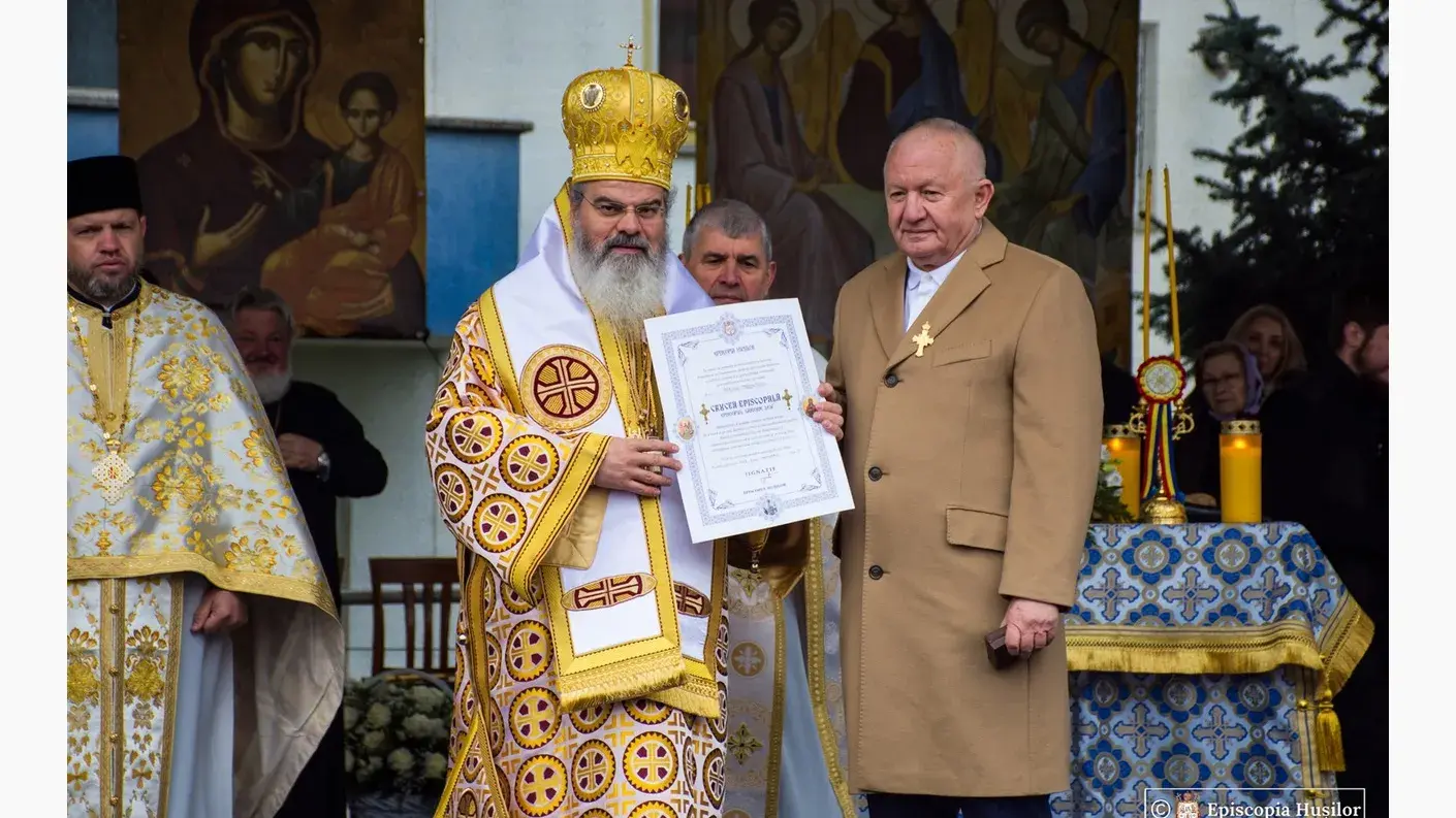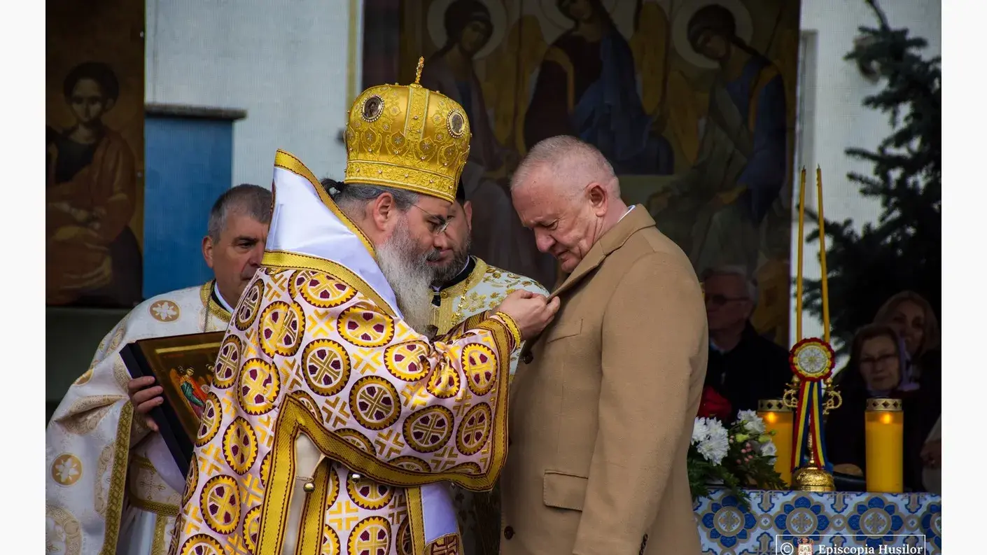 Preasfinția Sa i-a oferit familiei domnului Adrian Porumboiu, în semn de prețuire, Crucea eparhială „Episcopul Grigorie Leu” pentru mireni, cea mai înaltă distincție a Episcopiei Hușilor, precum și Diploma de ctitor.