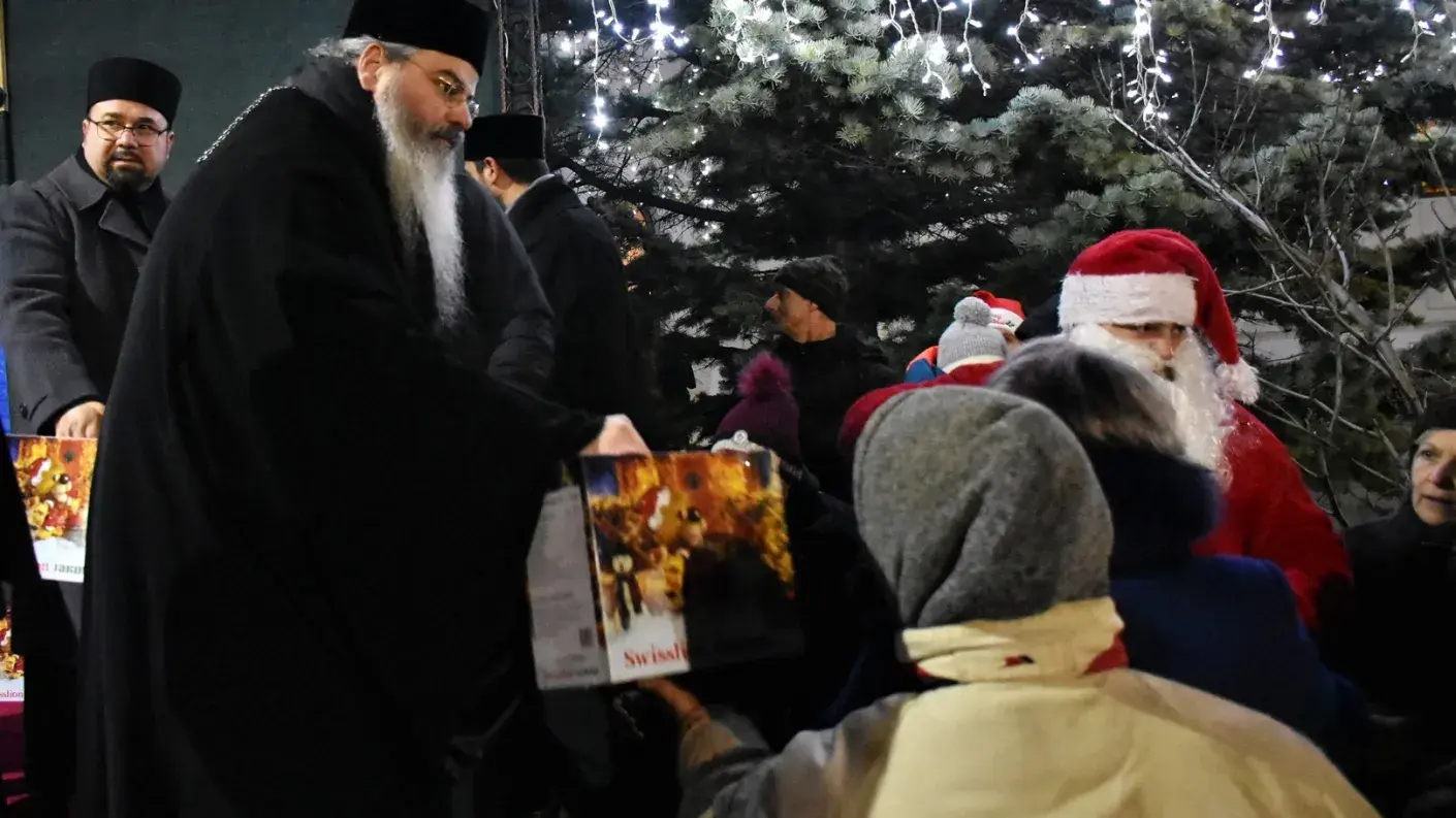 Începând cu ora 16.00 curtea Catedralei a început să se umple de copiii însoțiți de preoții parohi. Aici au fost întâmpinați de Preasfințitul Părinte Ignatie, Episcopul Hușilor, de părinții consilieri de la Centrul Eparhial, părinții protopopi, angajații și voluntarii Asociației „Filantropia Ortodoxă” Huși, alături de nelipsitul Moș Crăciun.