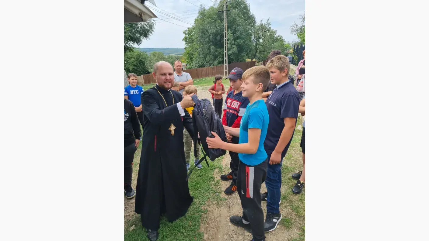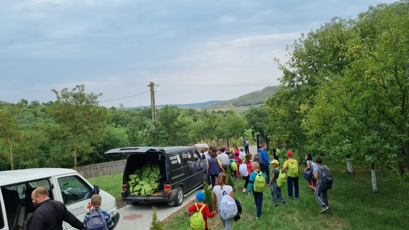 Suntem însoțiți, în această primă zi a caravanei, de protos. dr. Ghelasie Păcurar, parohul Parohiei ortodoxe românești „Sfântul Apostol Andrei” din Würzburg, Germania, prieten vechi al Asociației „Filantropia Ortodoxă” Huși, cel care, și în acest an, a pregătit 200 de ghiozdane noi, pline cu rechizite.