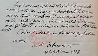 Fig. 1: Însemnare ce aparține lui Constantin Erbiceanu