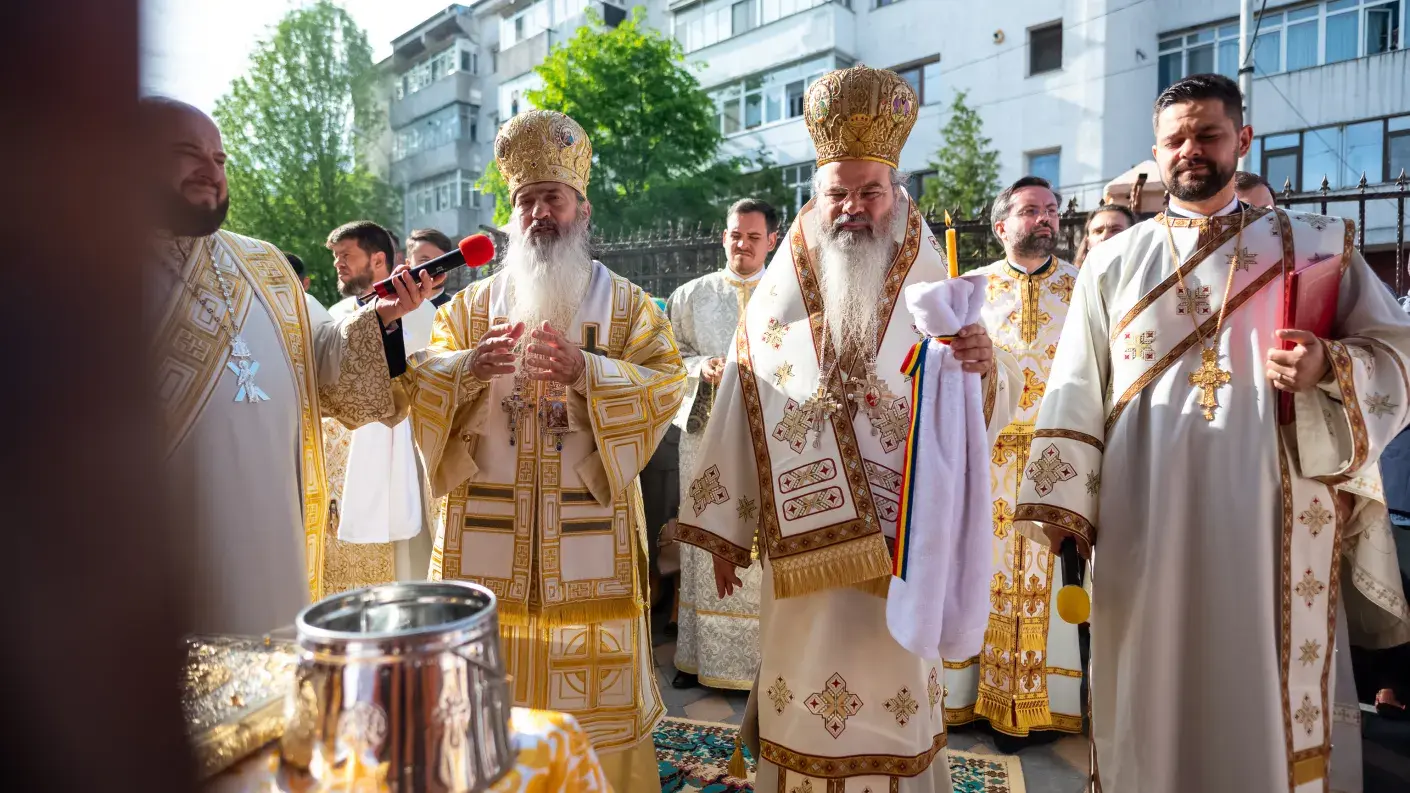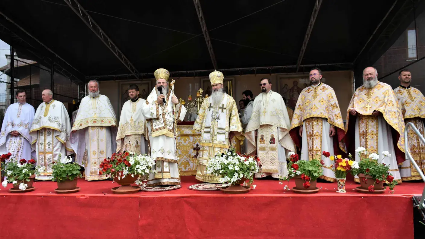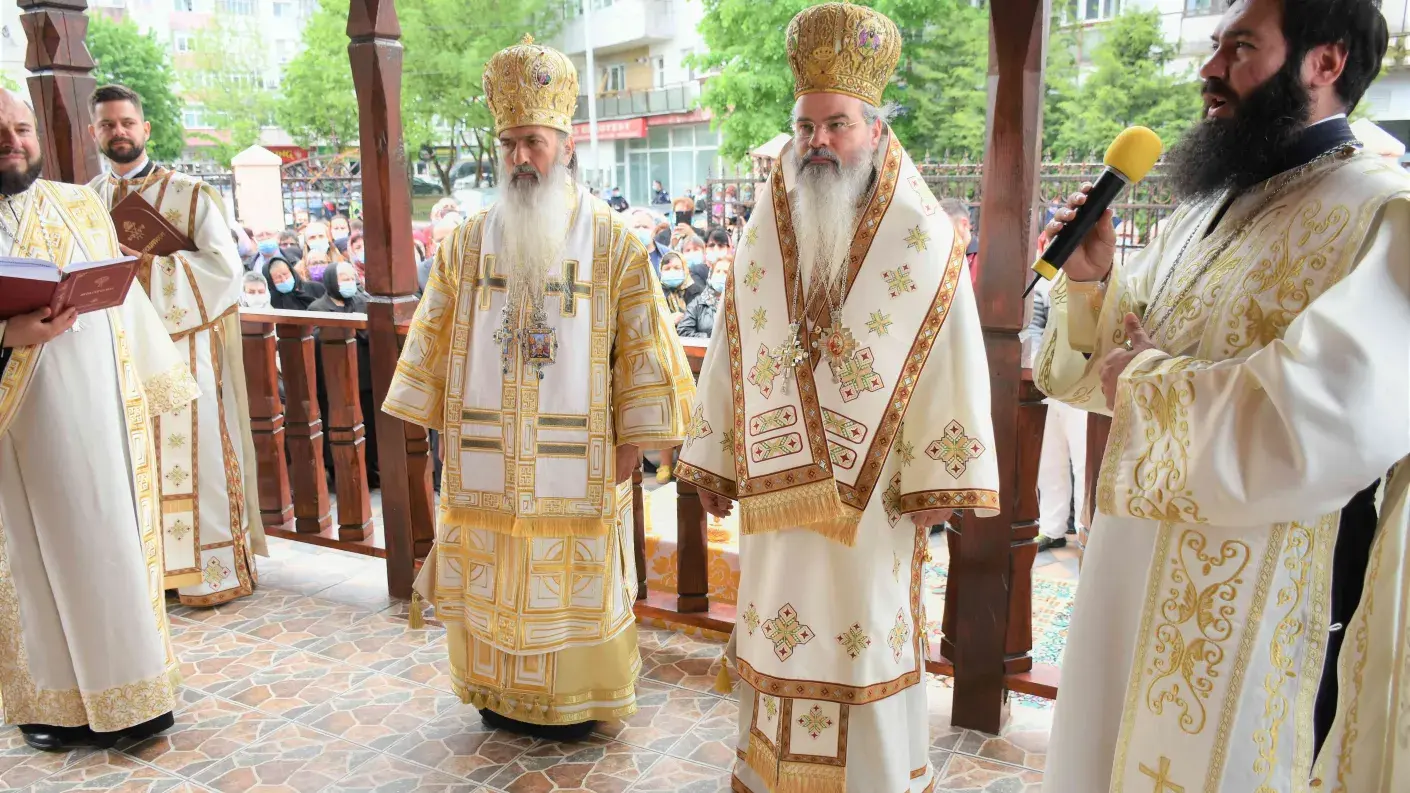 La primele ore ale dimineții, cei doi Ierarhi au săvârșit slujba de sfințire a picturii bisericii și a noilor clopote, iar apoi a urmat Sfânta Liturghie, oficiată pe un podium amenajat în proximitatea locașului de cult.