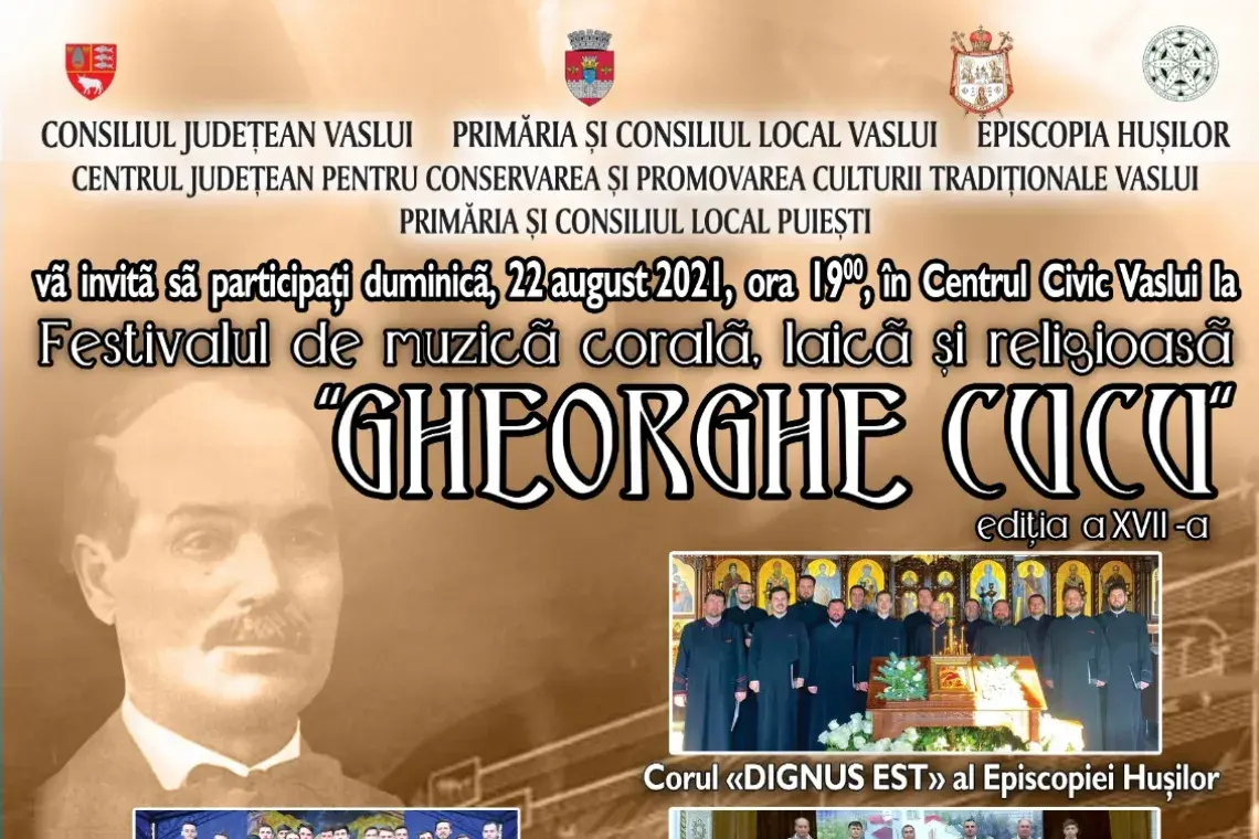 Festivalul de muzică „Gheorghe Cucu”: Grupul Psaltic „Tronos” al Patriarhiei Române, Formația de muzică veche „Anton Pann” și alți invitați de marcă, la Vaslui, pe 22 august 2021