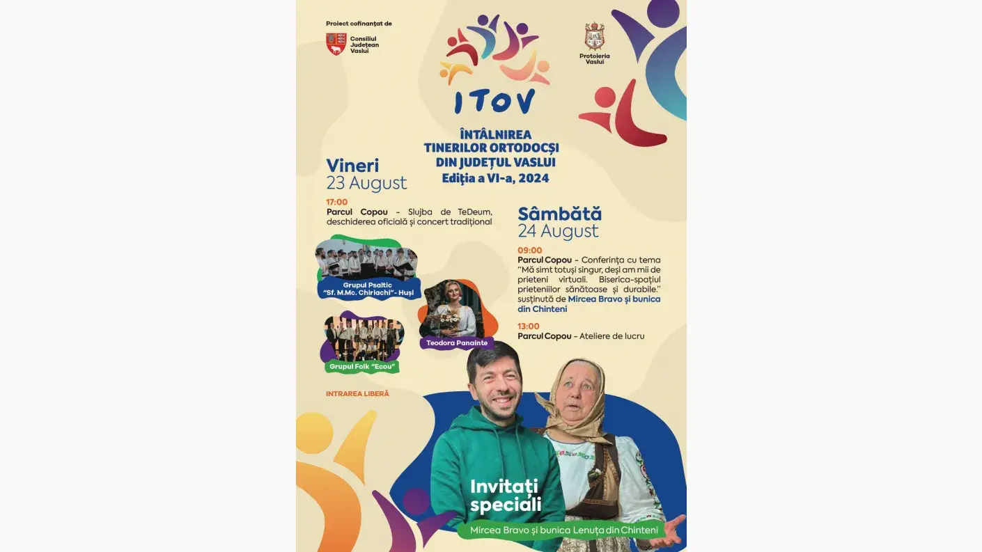 Întâlnirea Tinerilor Ortodocși Vaslui (ITOV), aflată la a șasea ediție, va reuni, la Vaslui, sute de tineri de pe tot cuprinsul Eparhiei. Aproximativ 100 de voluntari se vor implica în buna organizare a evenimentului, pe parcursul celor două zile.