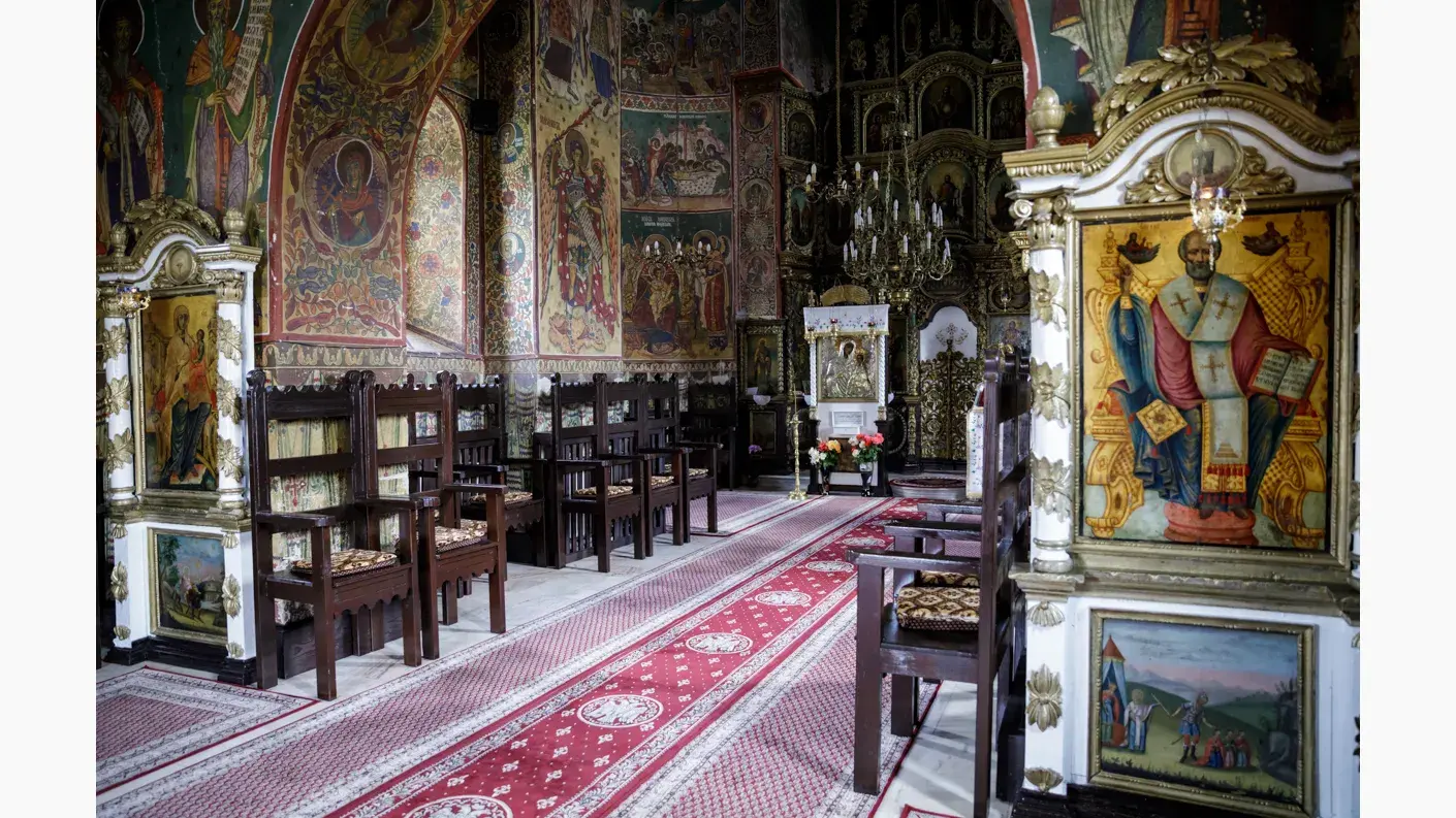 Având un plan triconic, edificiul impresionează atât prin echilibrul dimensiunilor, cât și prin sculptura catapetesmei și a mobilierului bisericesc, cu motive florale realizate în stil baroc la mijlocul secolului al XIX-lea, dar, mai ales, prin prezența icoanelor împărătești vechi, care introduc privitorii atenți în atmosferă de taină și de rugăciune. Pictura murală, executată în stilul neoclasic românesc de zugravul Vasile Pascu din Focșani între anii 1967 și 1977, va înlocui pe cea realizată în timpul stăreției egumenului grec Chiril Strichide.