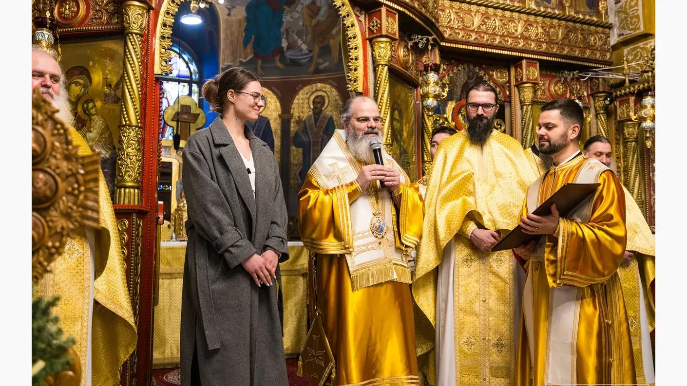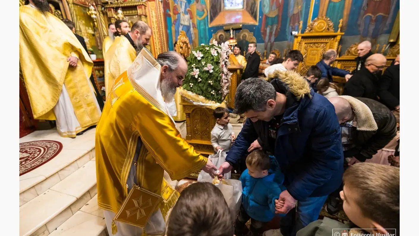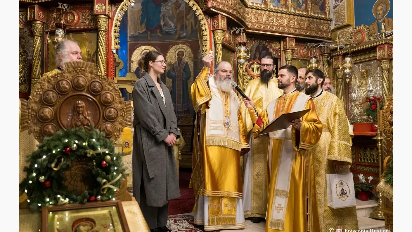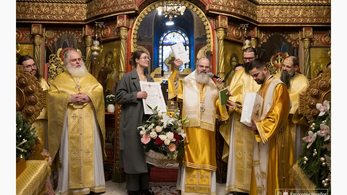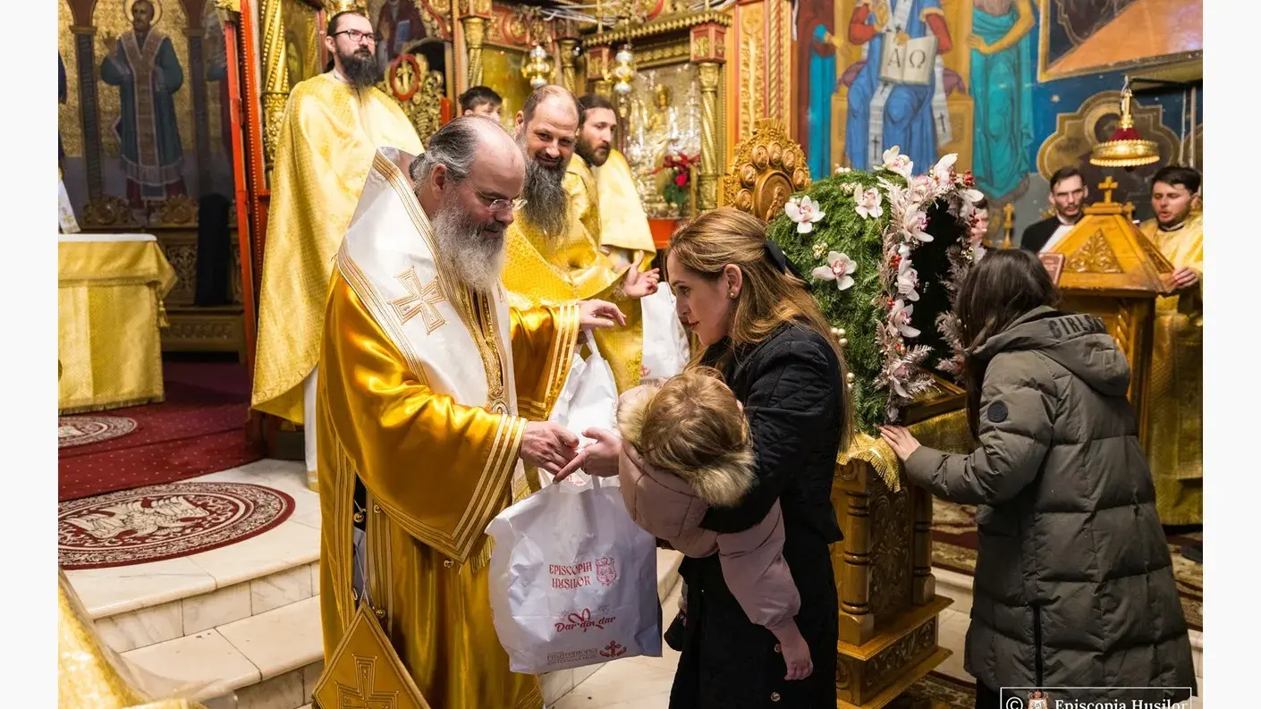 Într-un cadru festiv, la finalul Sfintei Liturghii, Părintele Episcop Ignatie a oferit, în semn de recunoștință, canotoarei Bianca Camelia Ifteni, Crucea eparhială „Maria Costachi” a Episcopiei Hușilor, alături de daruri de cărți și bani.