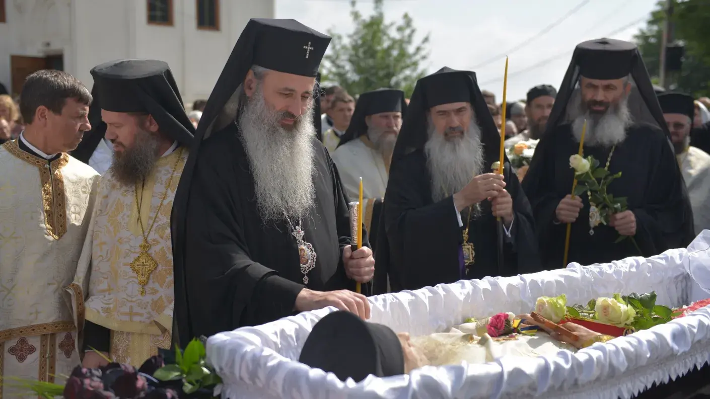 La final, sicriul cu trupul celui adormit a fost purtat de părinți în sunet de clopot în jurul Catedralei, după care a fost depus în mormântul săpat în dreptul absidei Sfântului Altar, întru nădejdea învierii şi a vieţii de veci. (sursa: doxologia.ro)