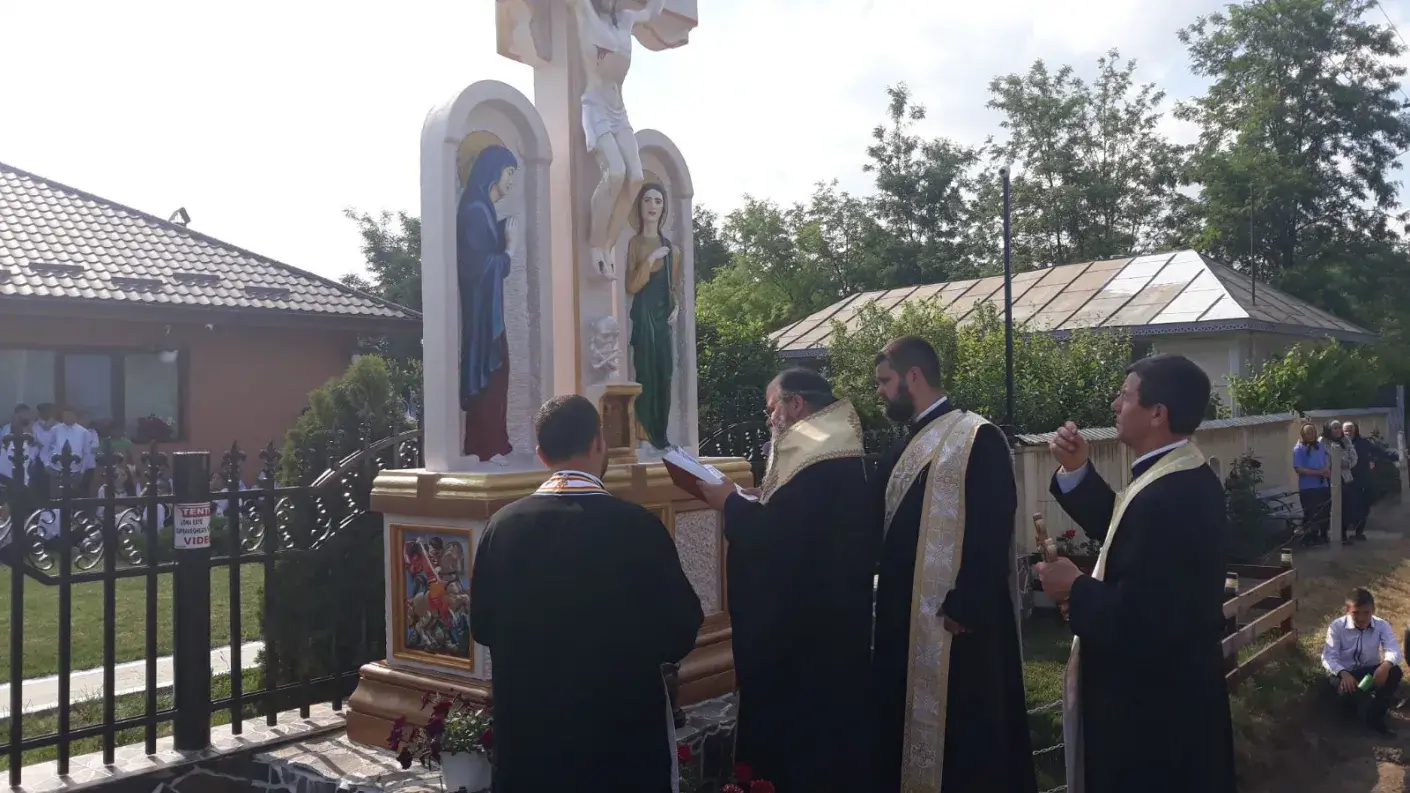 Troița sfințită a fost adusă de părintele paroh din Republica Moldova, fiind construită din piatră, cu o greutate de două tone. A fost adusă ca o mărturie a dragostei creștinilor din dreapta Prutului. Apreciind acest gest, făcut în Anul Centenarului, Părintele Episcop Ignatie a afirmat: „Biserica încearcă să fie prezentă peste Prut ca să mențină vie, trează, conștiința aceasta a românilor din Basarabia: că ei aparțin și sunt dintotdeauna ai țării noastre, ai patriei mame, pe care noi o numim atât de frumos: România.”