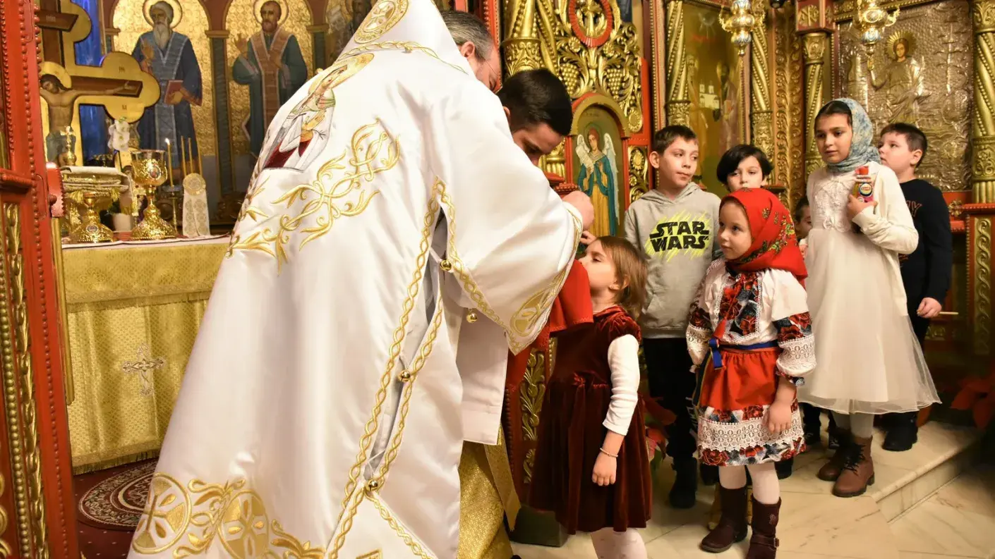 La finalul Sfintei Liturghii, Ierarhul Huşilor i-a colindat pe toţi cei de faţă, iar copiii prezenţi au primit daruri.