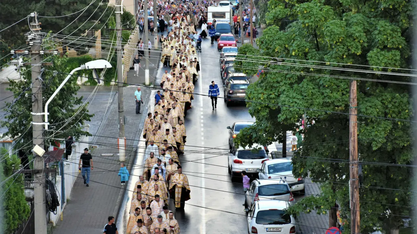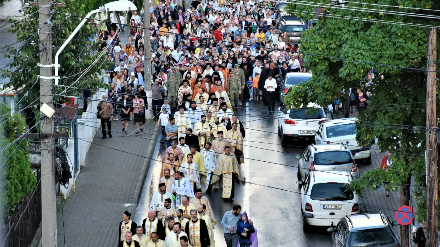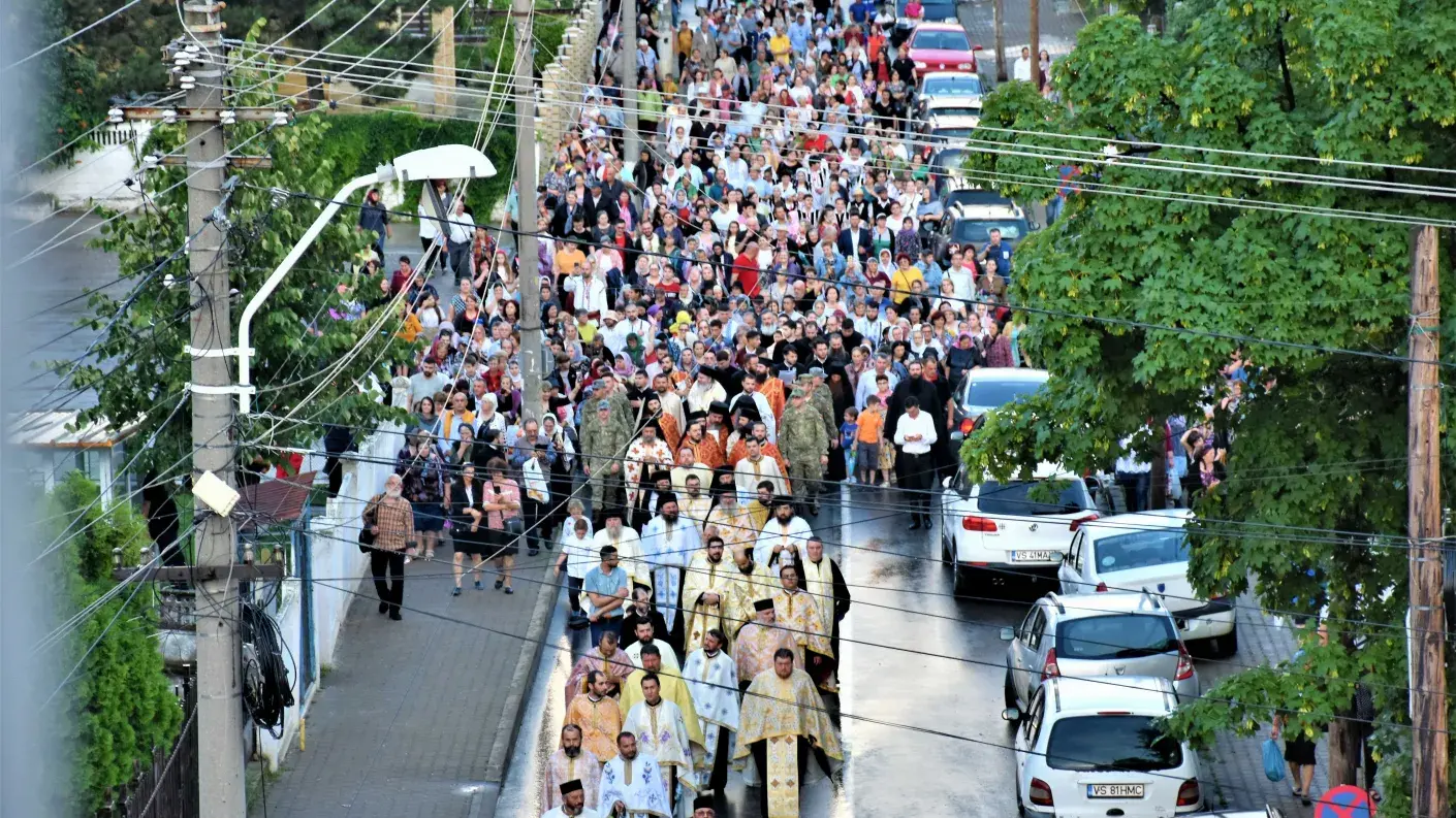 Un număr impresionant de creștini, alături de preoții din cuprinsul întregii eparhii, au însoțit-o pe Sfânta Muceniță Chiriachi în pelerinajul din inima municipiului Huși, în pofida ploii torențiale de vară.