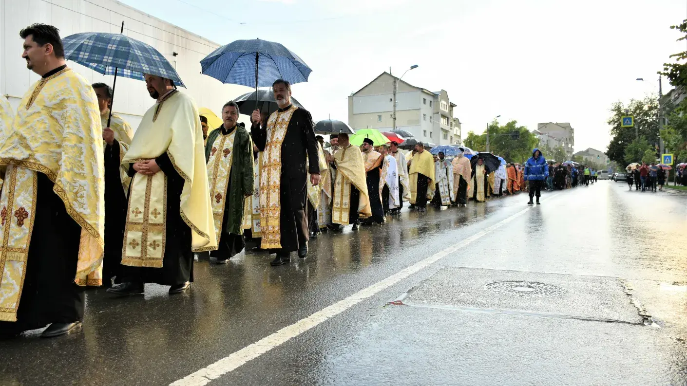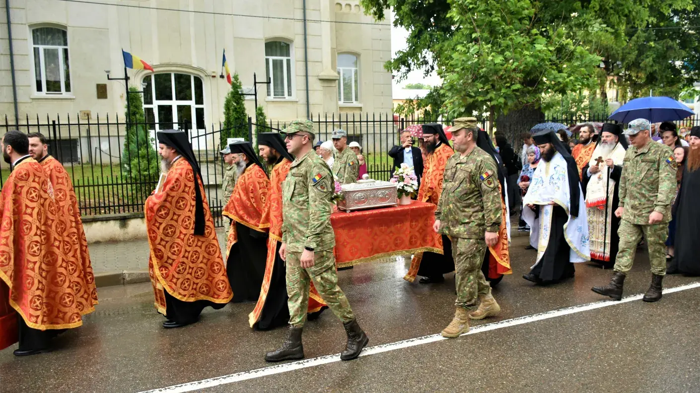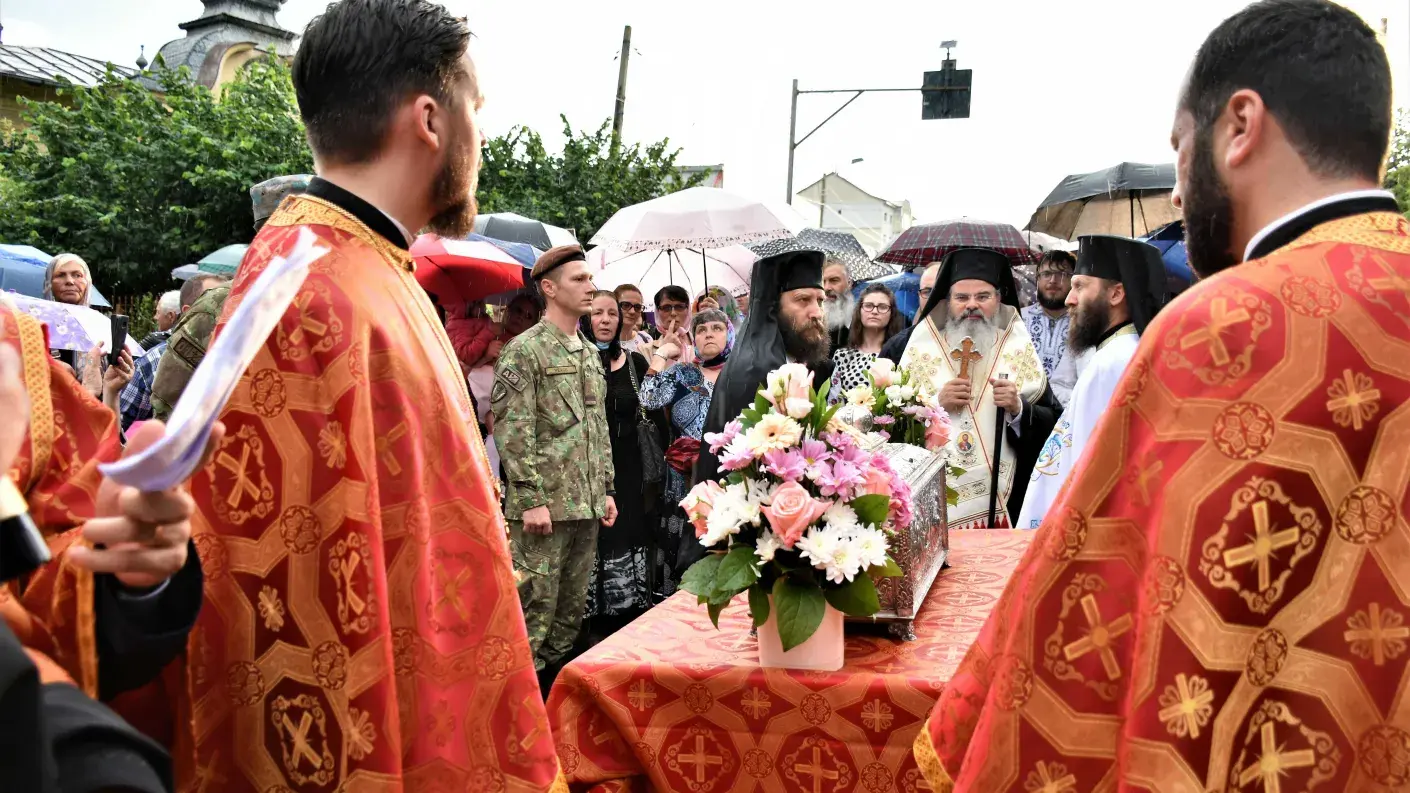 Un număr impresionant de creștini, alături de preoții din cuprinsul întregii eparhii, au însoțit-o pe Sfânta Muceniță Chiriachi în pelerinajul din inima municipiului Huși, în pofida ploii torențiale de vară.
