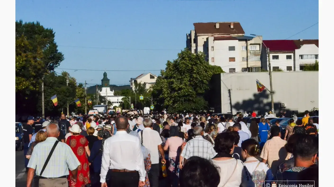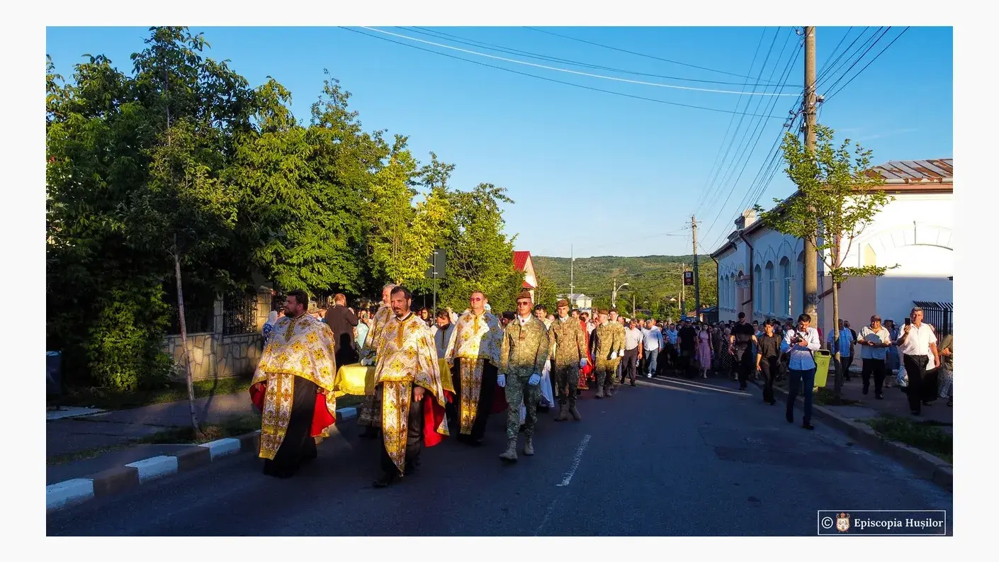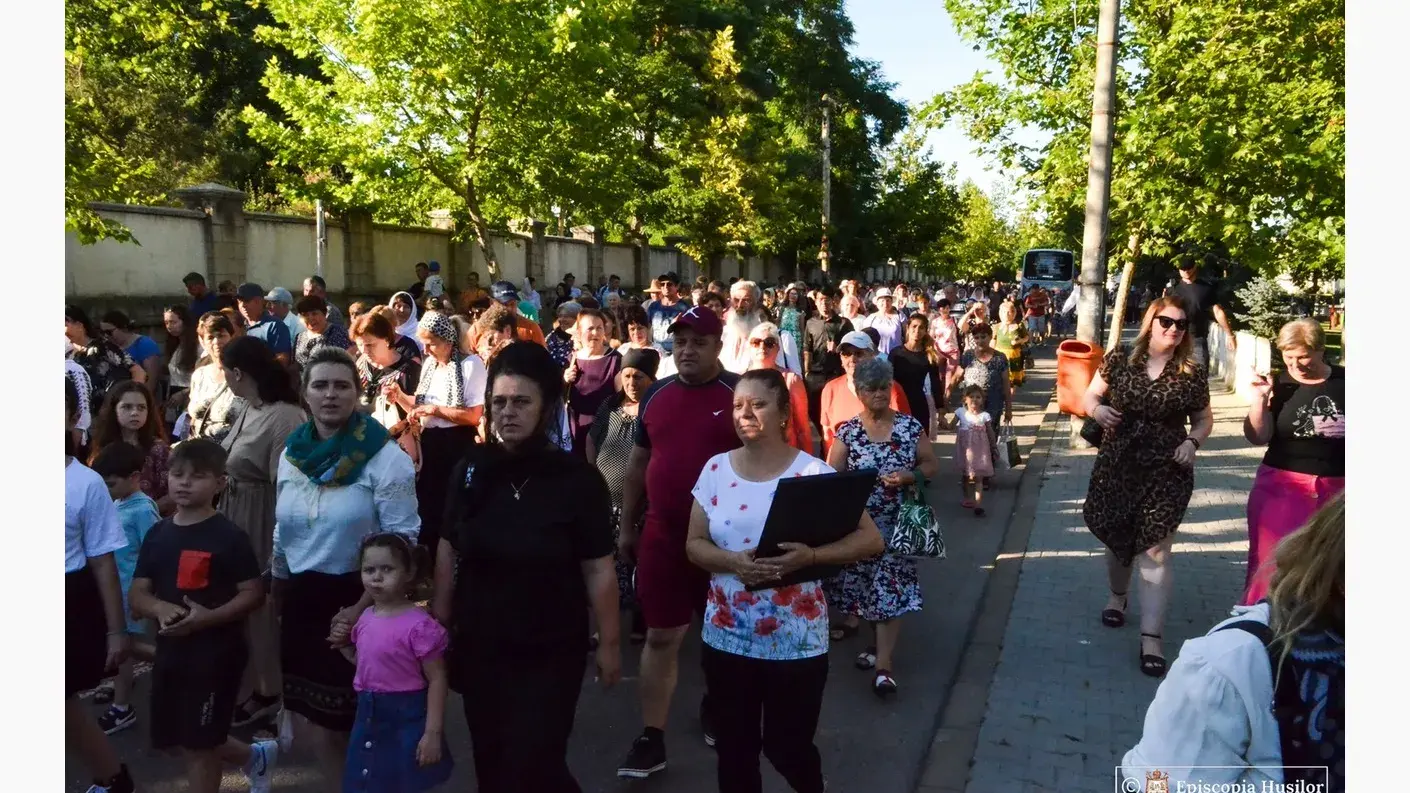 O mare de oameni au trecut, din curtea Catedralei, pe sub impunătorul turn clopotniță, revărsând în inima orașului Huși mărturia credinței și a dragostei de sfinți, precum și comuniunea în rugăciune.