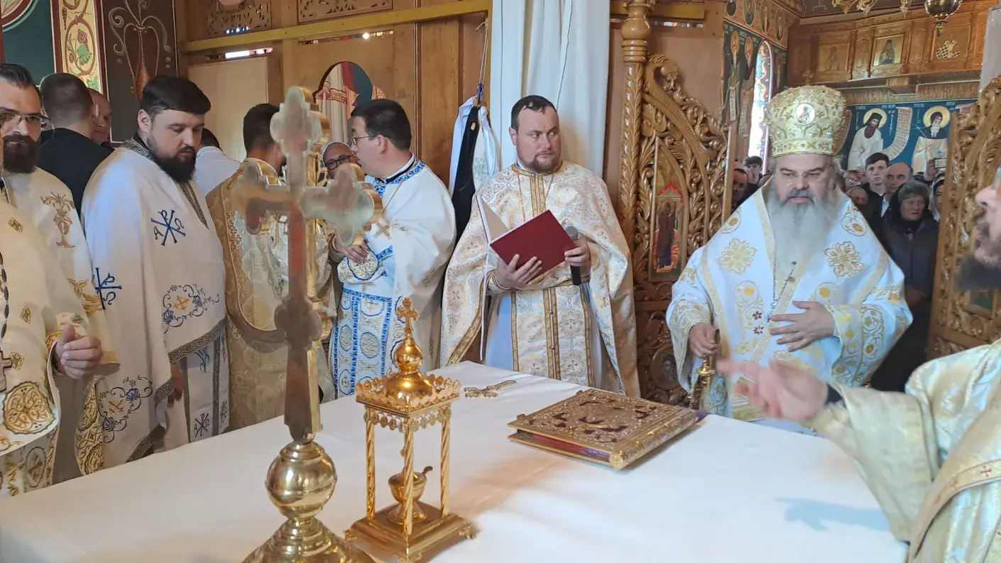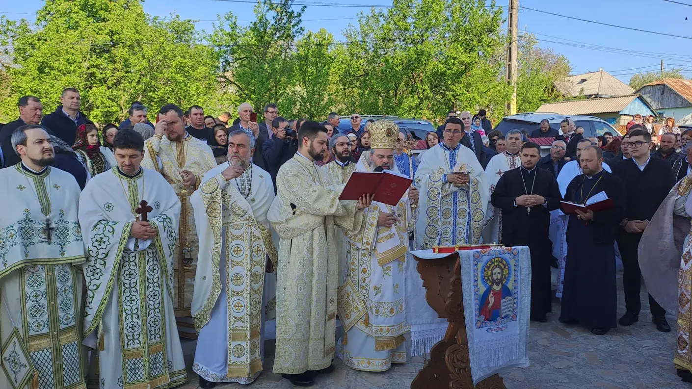 După slujba de sfințire, a urmat Sfânta Liturghie, oficiată în apropierea locașului de cult.