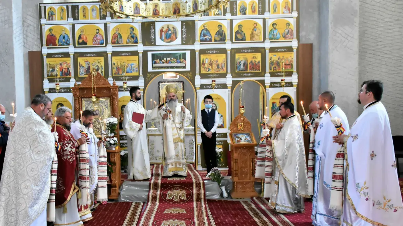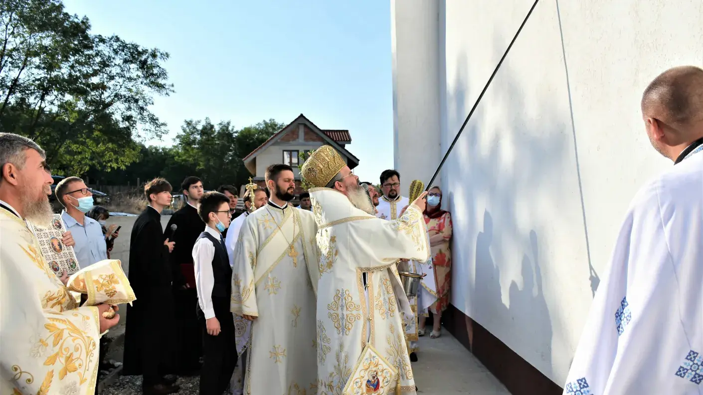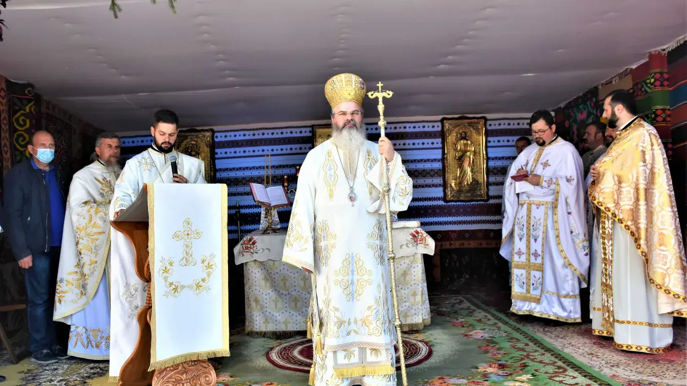 După sfinţirea bisericii a urmat Sfânta Liturghie, oficiată pe un podium în apropierea locaşului de cult.