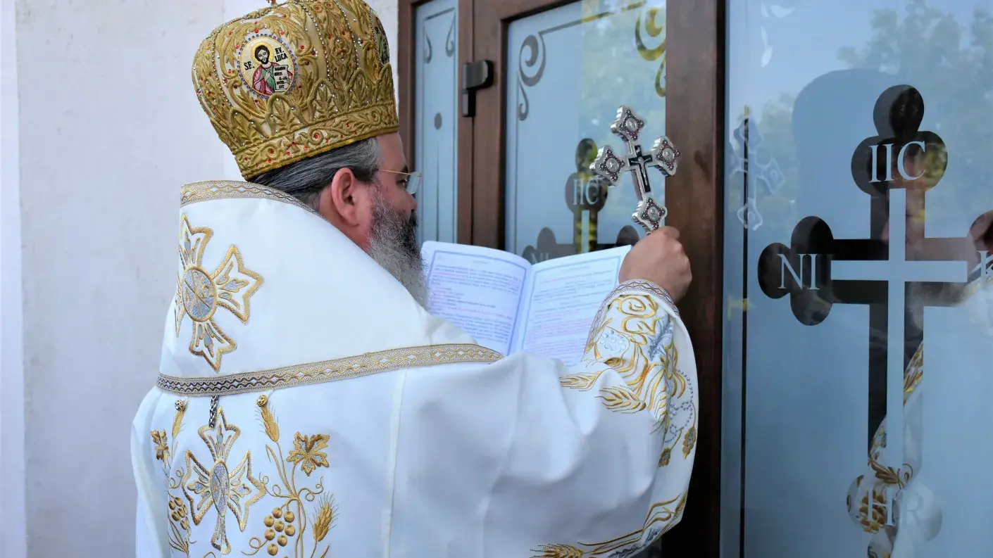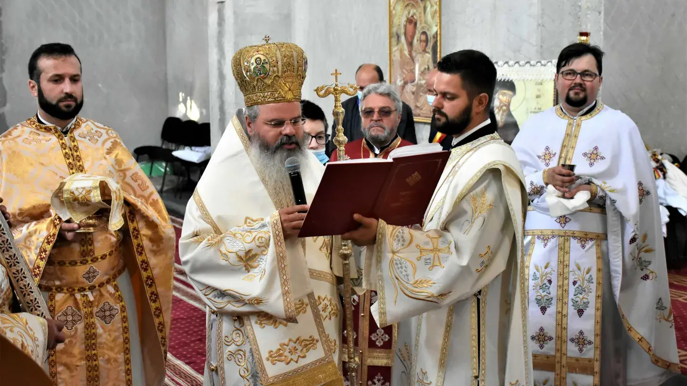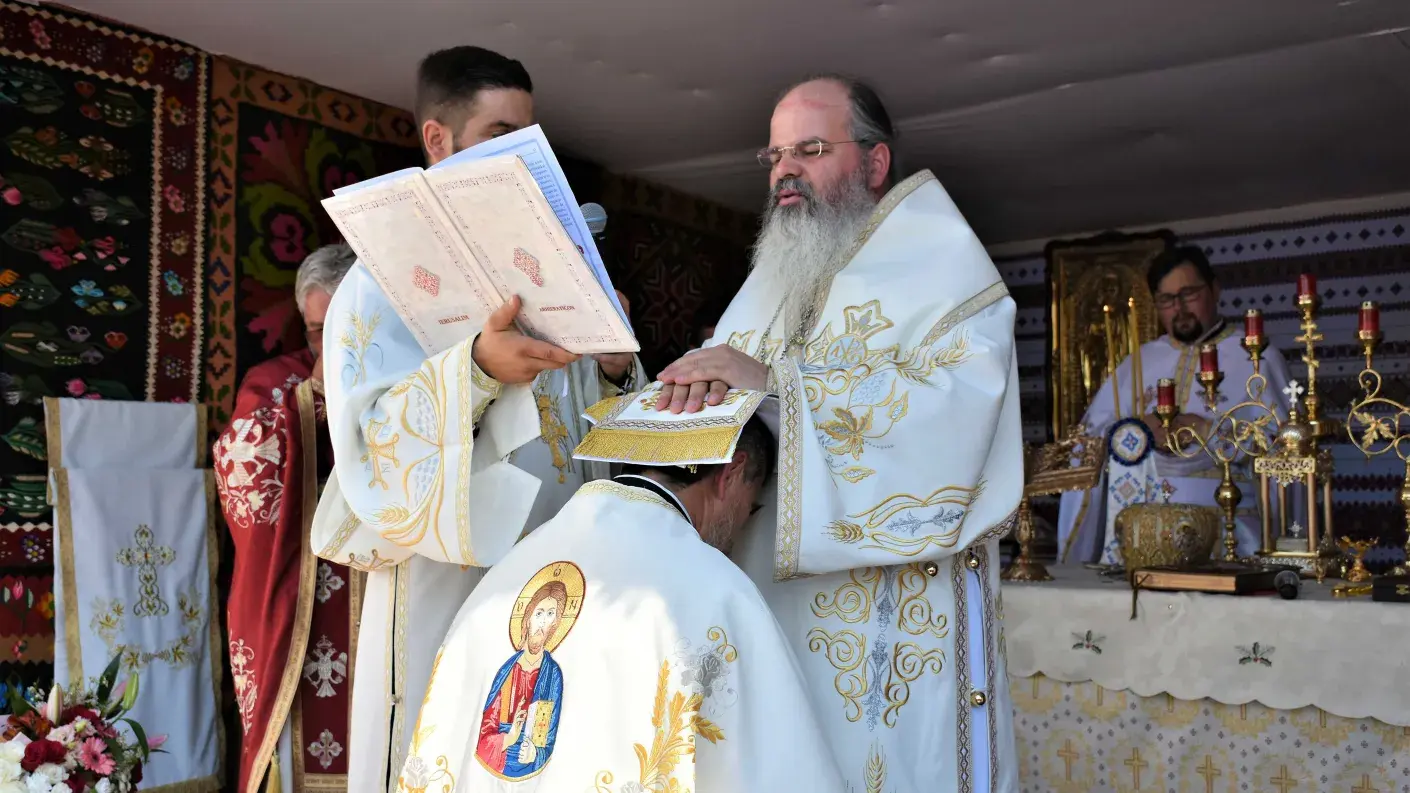După sfinţirea bisericii a urmat Sfânta Liturghie, oficiată pe un podium în apropierea locaşului de cult.