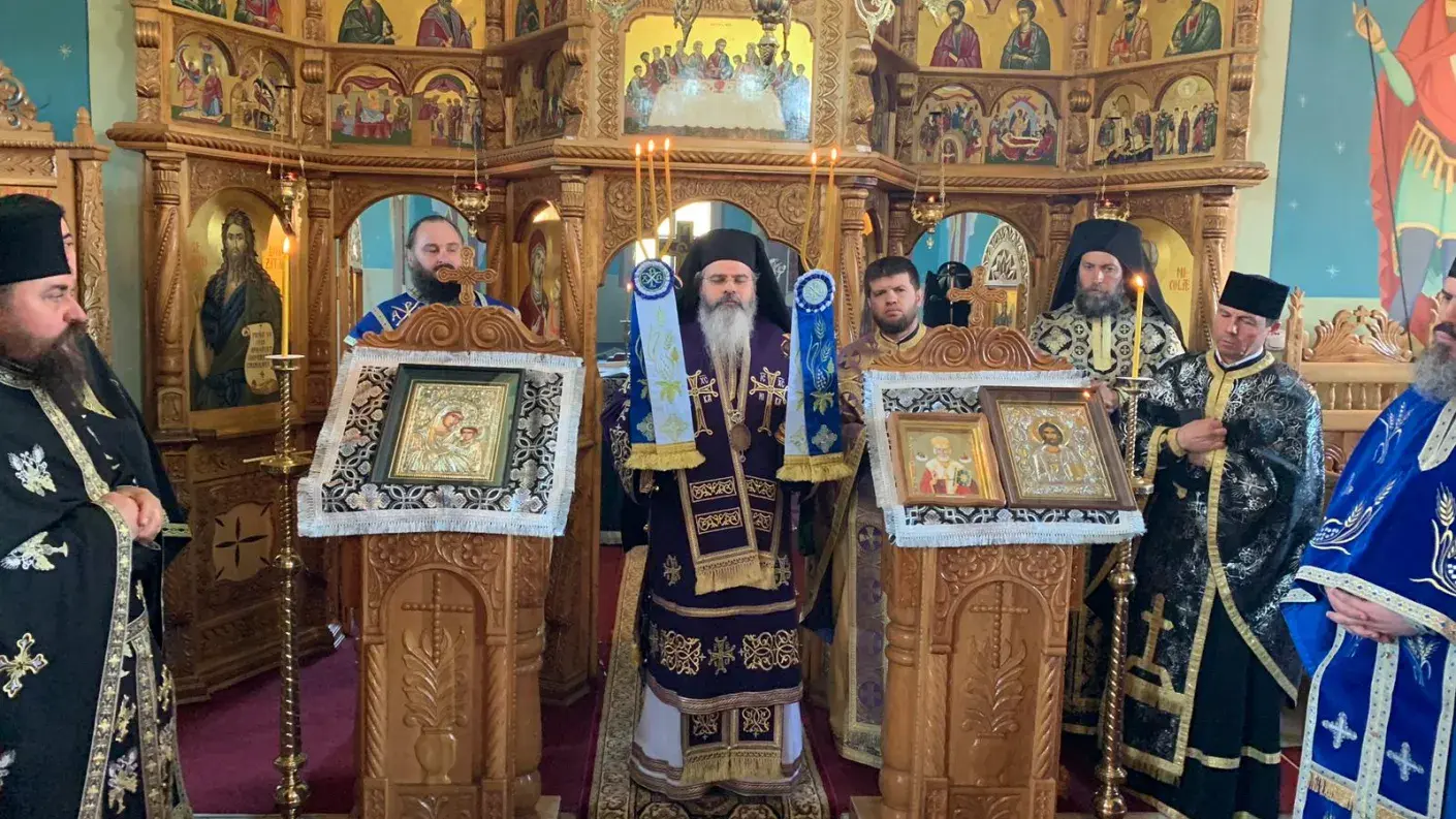 După Sfânta Liturghie, Părintele Episcop Ignatie a săvârşit rânduiala hirotesiei întru stareţ pentru părintele arhimandrit Timotei Condurache, pe care l-a instalat în slujirea de stareţ al Mănăstirii Bogdăniţa.