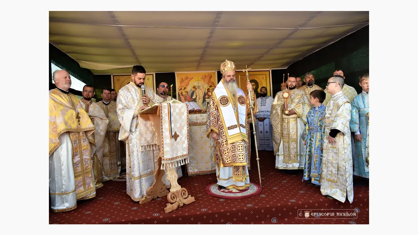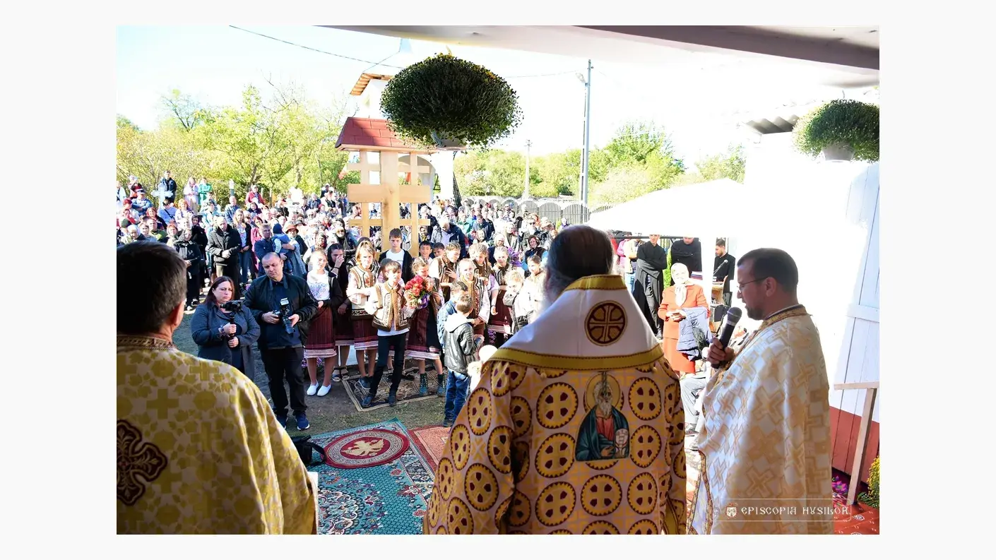 După sfințire a urmat Sfânta Liturghie oficiată în apropierea locașului de cult.