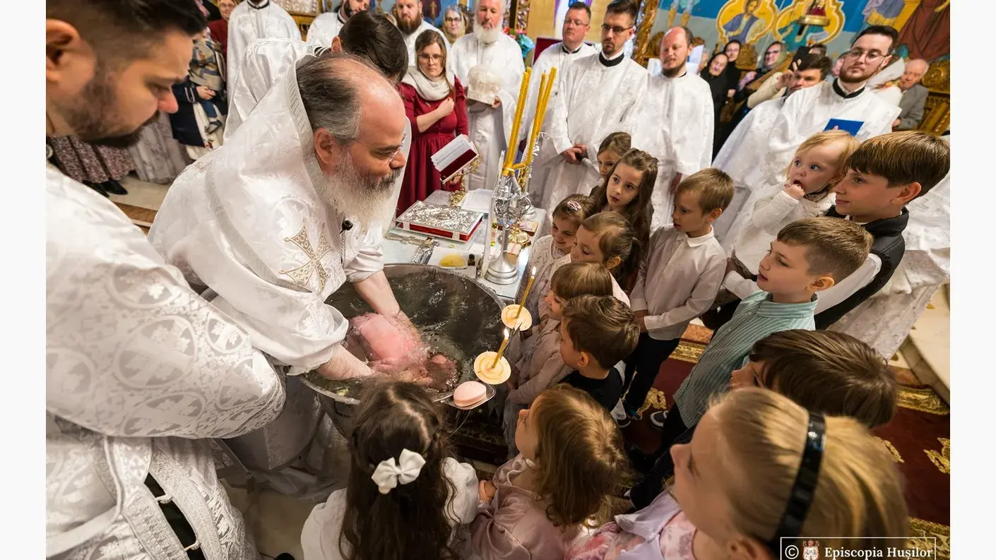Miercuri, 23 aprilie 2025, de Sărbătoarea Sfântului Mare Mucenic Gheorghe, Preasfințitul Părinte Episcop Ignatie a săvârșit Sfânta Liturghie baptismală la Catedrala Episcopală din Huși, în cadrul căreia a încreștinat-o pe micuța Eliana, cea de-a treia fiică a părintelui secretar eparhial Alexandru Bahnar și a soției sale, Alina.
