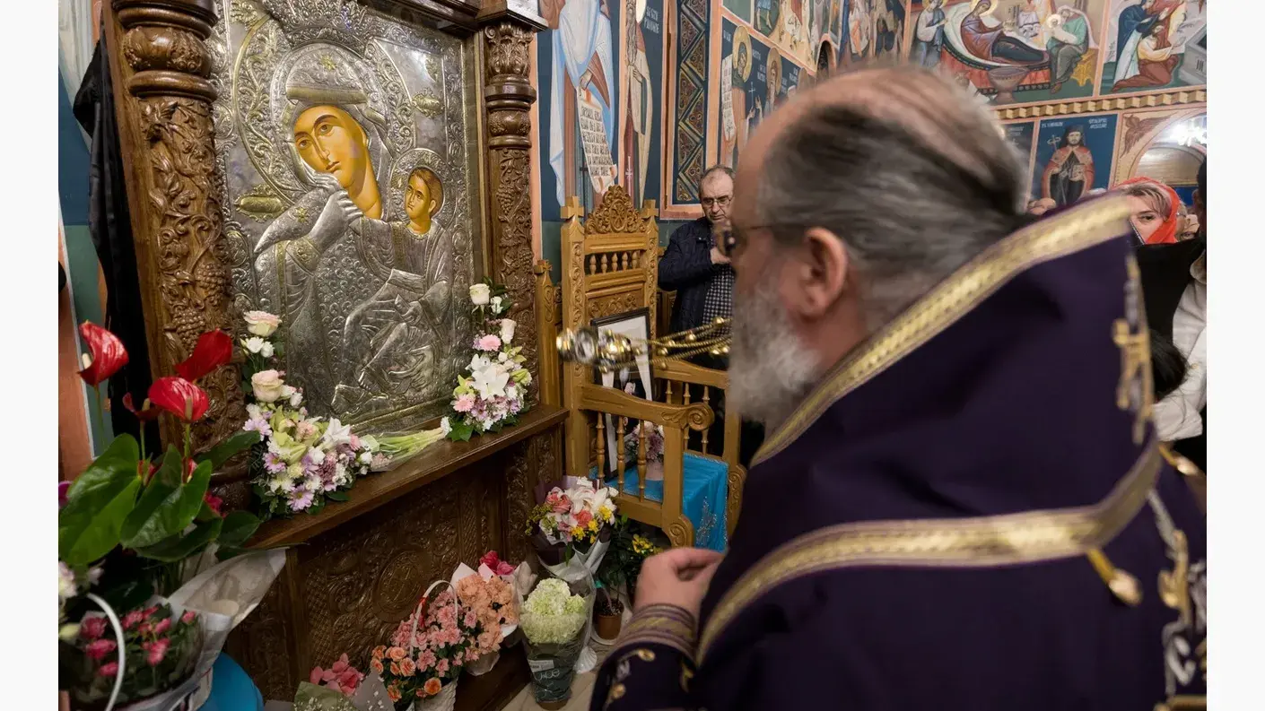 La finalul Sfintei Liturghii, Părintele Episcop Ignatie a sfințit icoana Maicii Domnului Paramythía (Mângâietoarea) și candelabrul central al bisericii.
