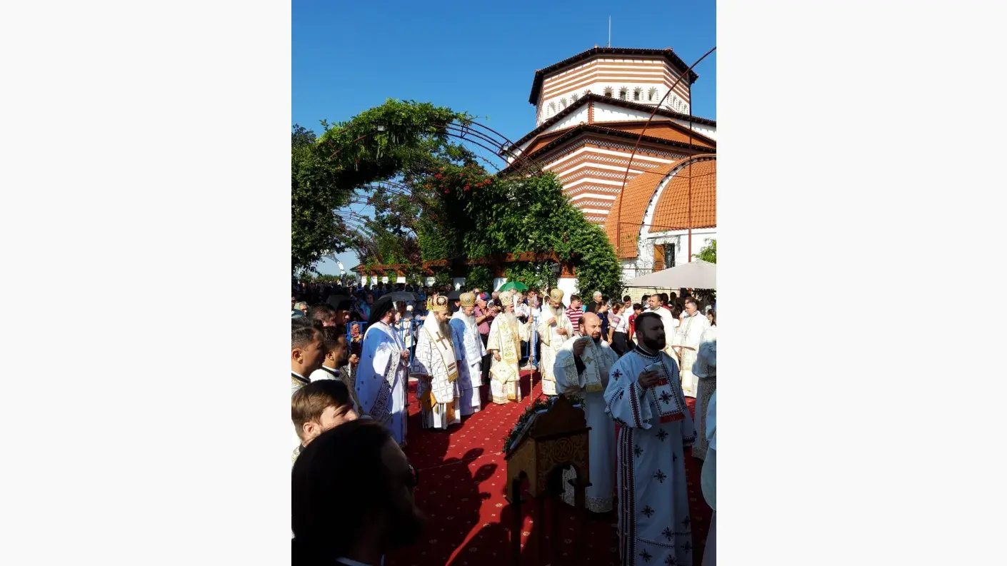 Slujba a fost oficiată de Înaltpreasfințitul Părinte Teodosie, Arhiepiscopul Tomisului, alături de Preasfințitul Părinte Episcop Ignatie al Hușilor, de Preasfințitul Părinte Galaction, Episcopul Alexandriei și Teleormanului, și de Preasfințitul Părinte Antonie, Episcopul de Bălți, înconjurați de un sobor de preoți și diaconi.