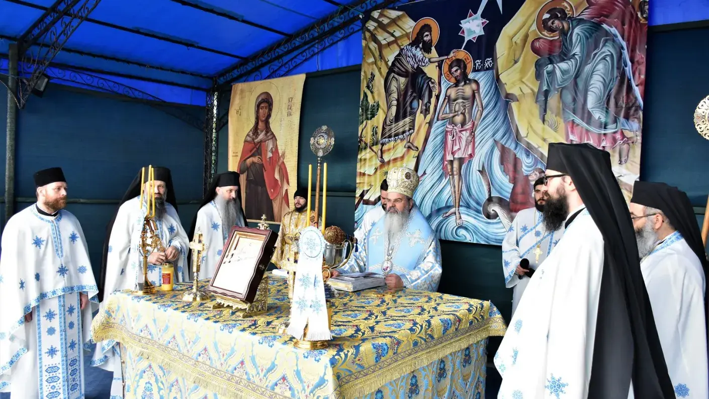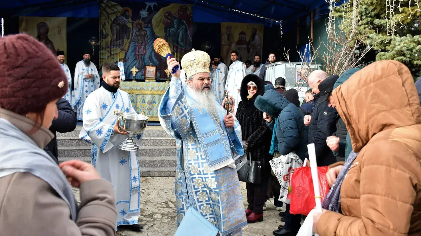 După Sfânta Liturghie, Părintele Episcop Ignatie a oficiat Slujba Aghesmei Mari, în spațiul amenajat în fața statuii Sfântului Voievod Ștefan cel Mare, binecuvântând cu apă sfinţită pe toți cei prezenţi.