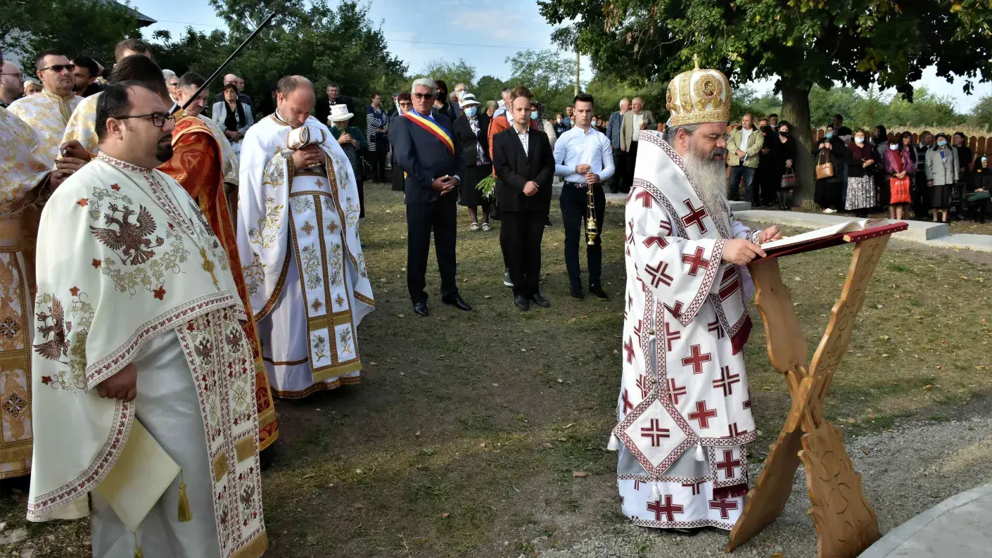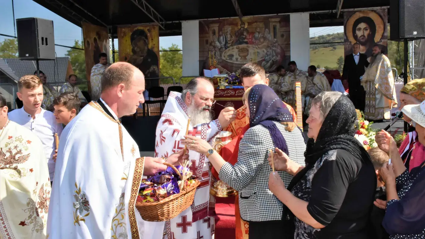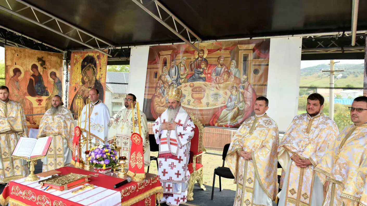 După slujba de târnosire a bisericii, a urmat Sfânta Liturghie, oficiată pe un podium special amenajat.