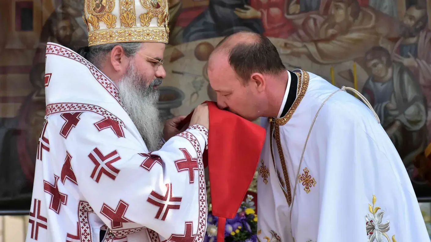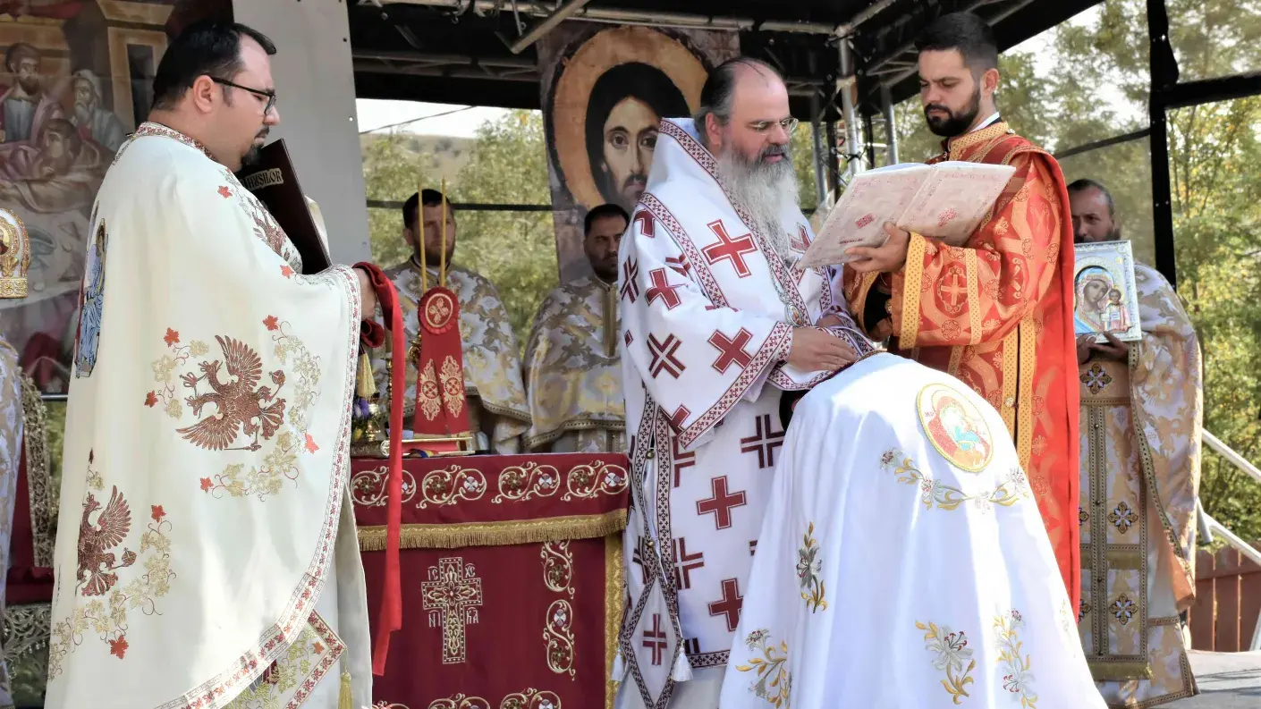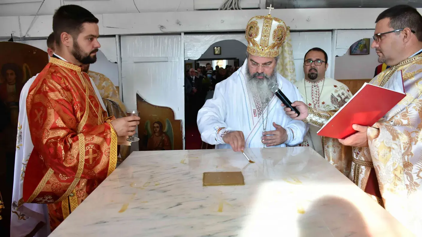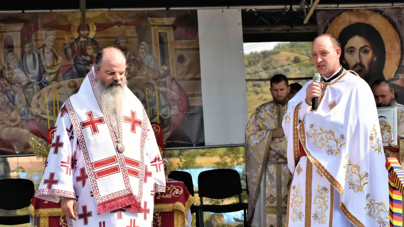 După slujba de târnosire a bisericii, a urmat Sfânta Liturghie, oficiată pe un podium special amenajat.