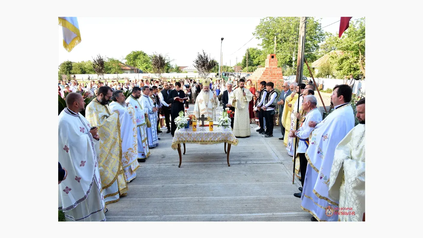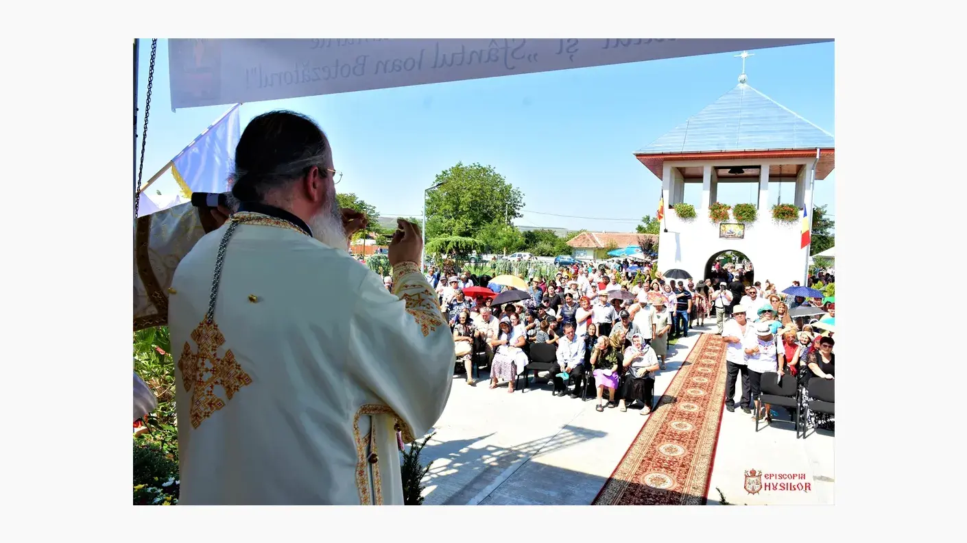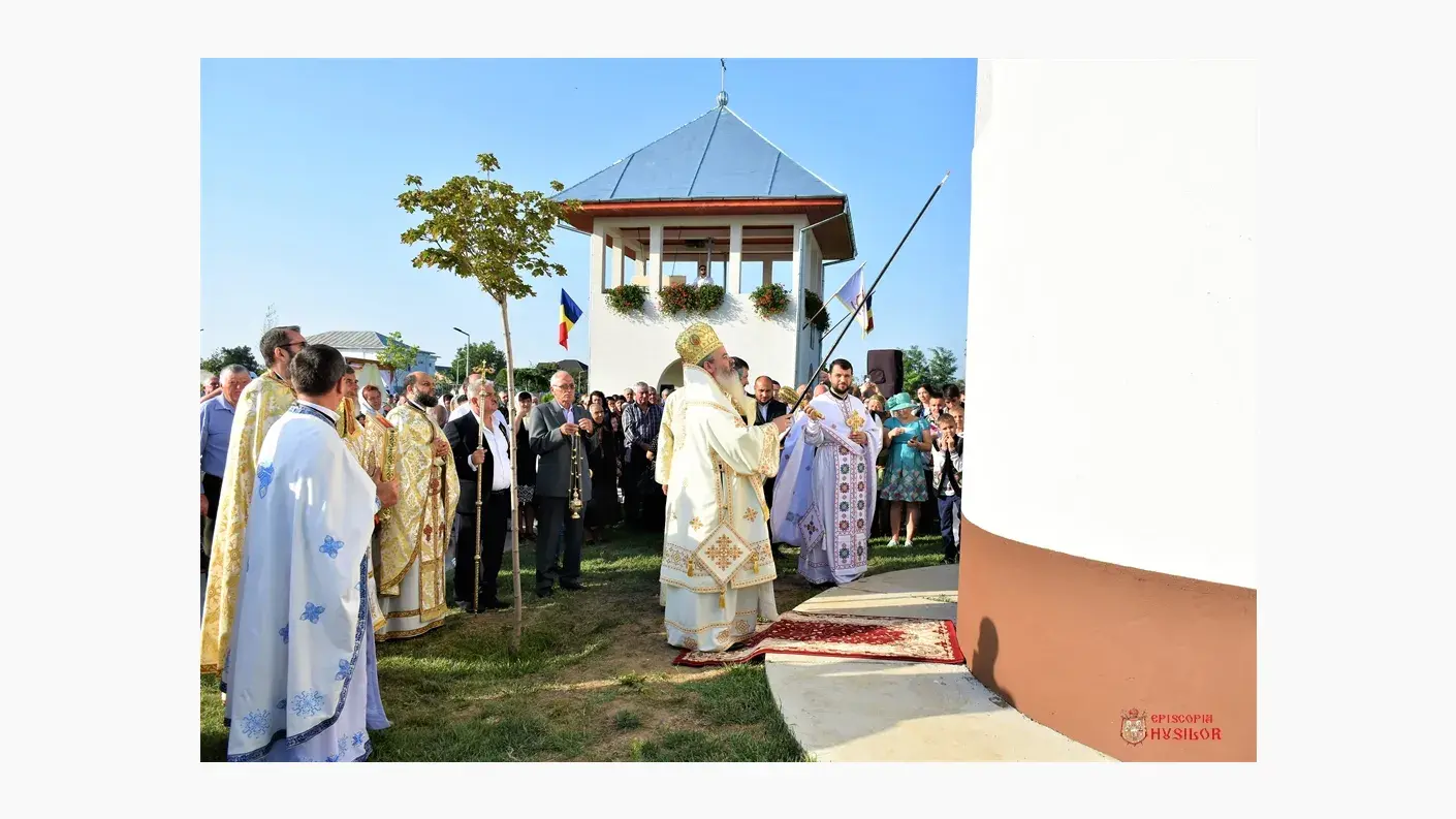 După slujba de sfințire a bisericii și a clopotniței, a urmat Sfânta Liturghie, oficiată în apropierea lăcașului de cult. Răspunsurile liturgice au fost date de membrii corului „Aletheia” din Iași.