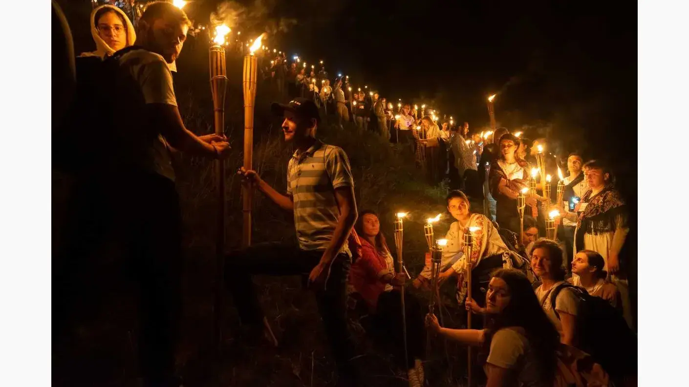 Sute de tineri au urcat pe Dealul lui Ștefan, unde au format numărul 150 și au aprins torțe, cântând imnuri și tropare dedicate Maicii Domnului și Sfântului Domnitor Ștefan cel Mare, dar și cântece patriotice.