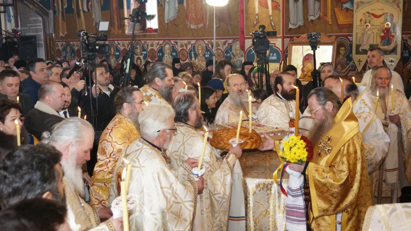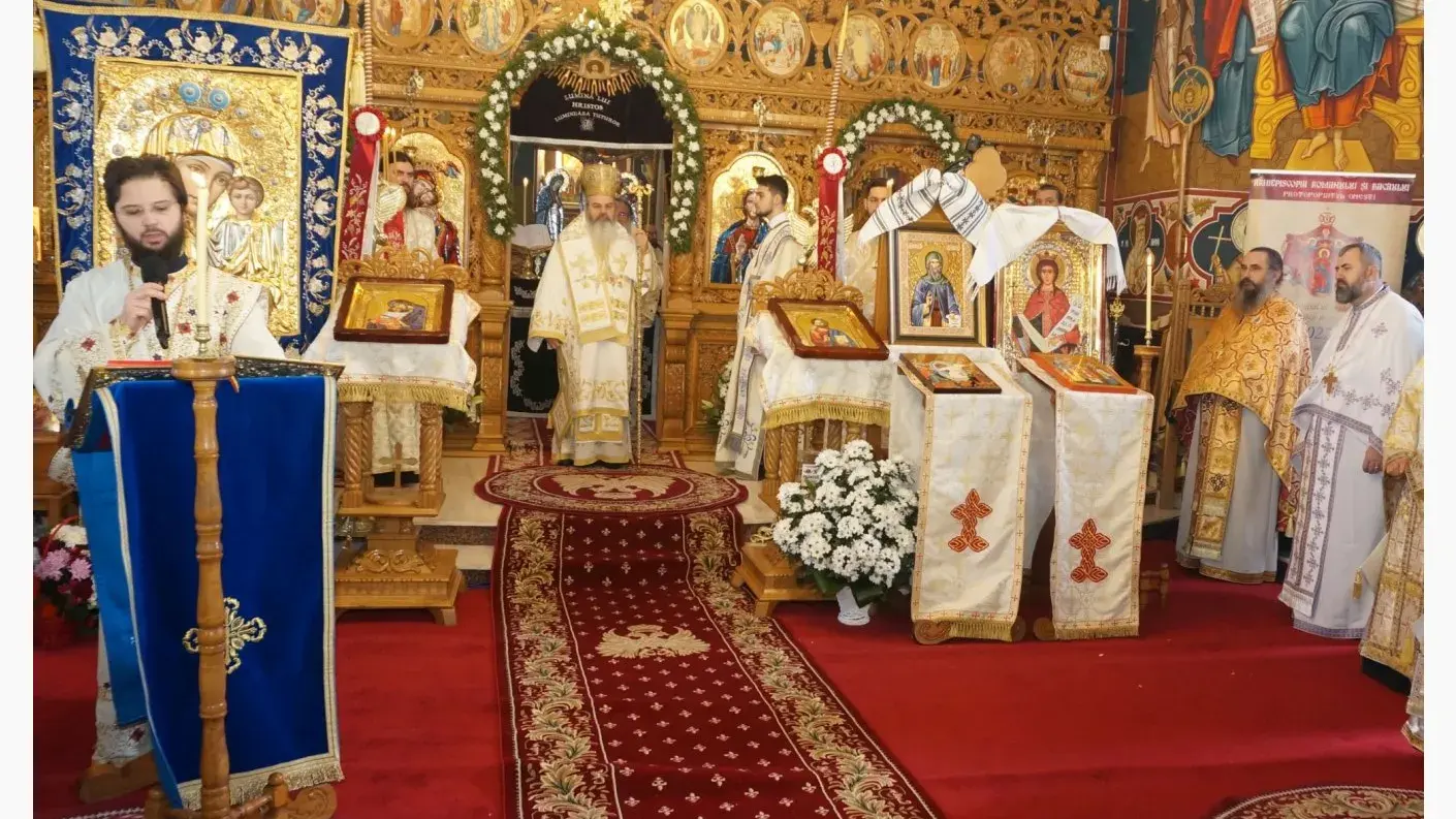 Sfânta Liturghie a fost oficiată de Înaltpreasfințitul Părinte Ioachim, Arhiepiscopul Romanului și Bacăului, alături de Preasfințitul Părinte Ignatie, Episcopul Hușilor, și de Preasfințitul Părinte Andrei, Episcopul Harghitei și Covasnei, înconjurați de un sobor numeros de preoți și diaconi.