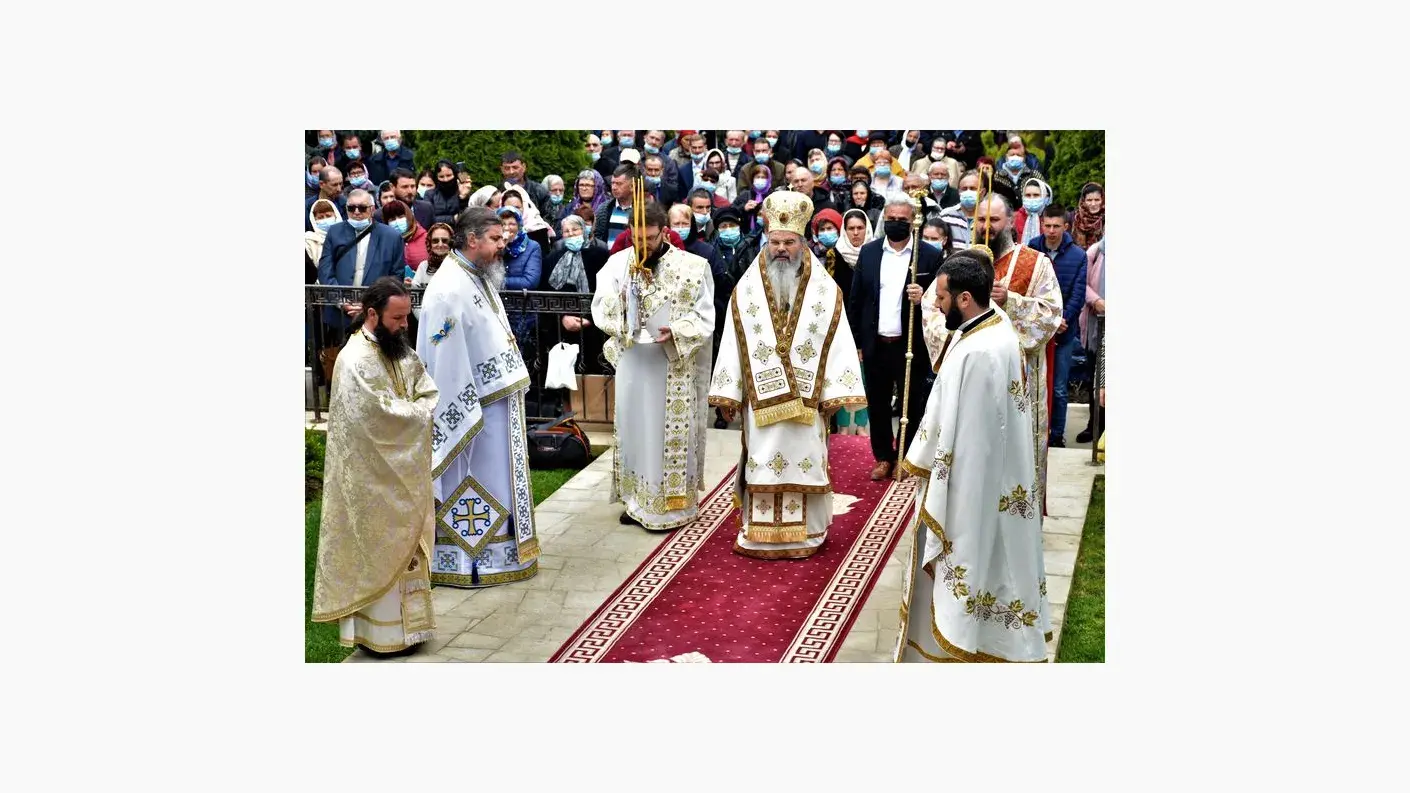 Sfânta Liturghie a fost oficiată în aer liber, pe un podium special amenajat, respectându-se regulile impuse de autorităţi în perioada stării de alertă, ca urmare a măsurilor de prevenție şi limitare a răspândirii coronavirusului.