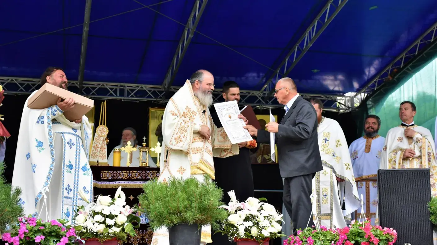 La finalul Sfintei Liturghii, Preasfinția Sa a sfințit noua clopotniță a Mănăstirii și a oferit distincții de vrednicie celor care au sprijinit lucrările edilitare din cadrul așezământului monahal.