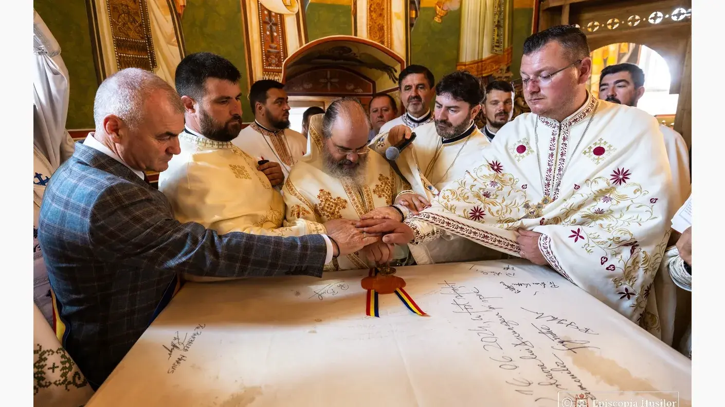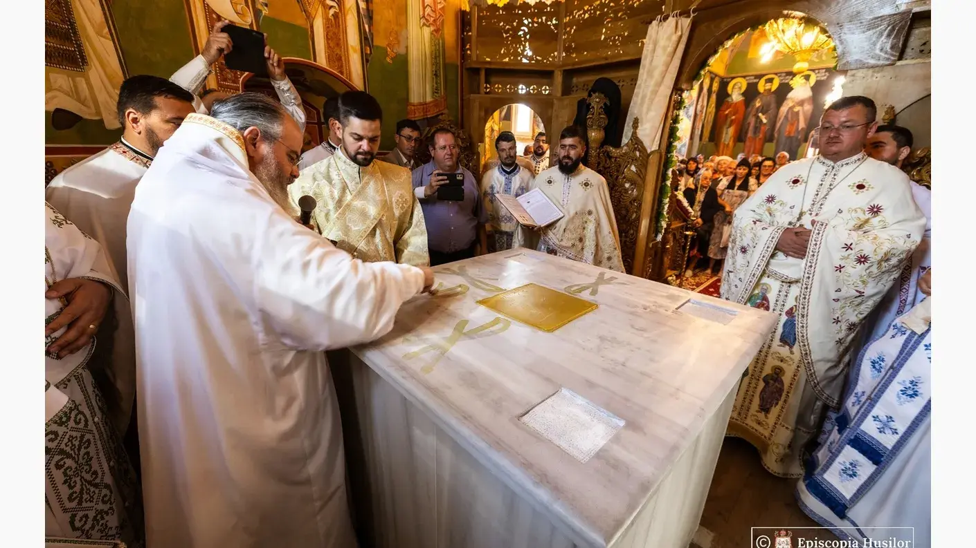 La finalul Sfintei Liturghii, în semn de prețuire, Părintele Episcop Ignatie l-a hirotesit întru iconom stavrofor pe părintele paroh Ionuț Constantin Gavrilă. De asemenea, Ierarhul Hușilor a oferit distincții de vrednicie celor care au sprijinit lucrările edilitare de restaurare a sfântului locaș.