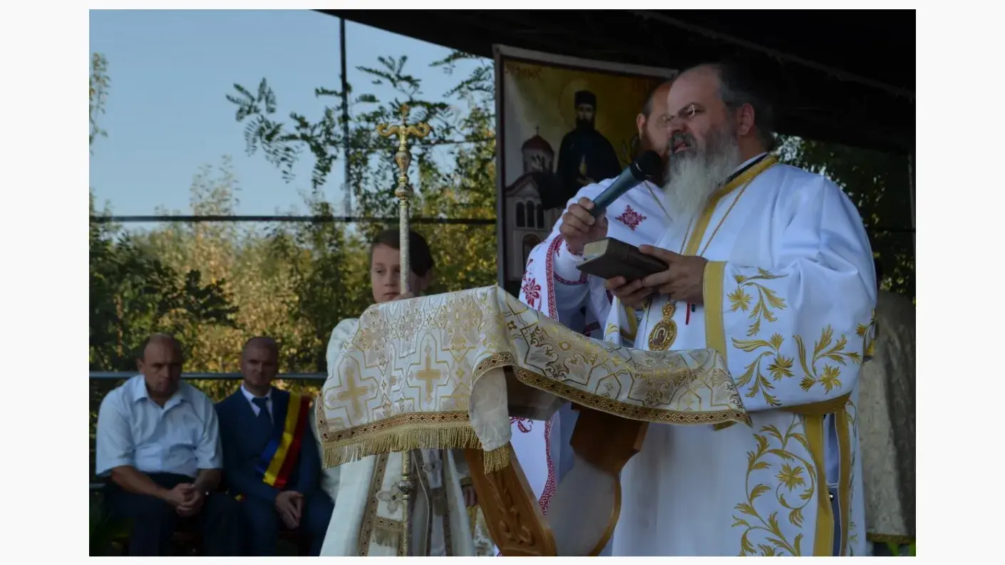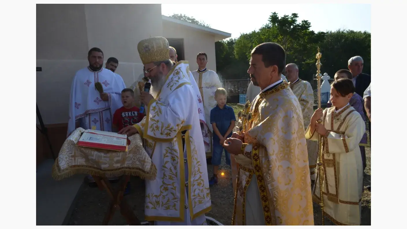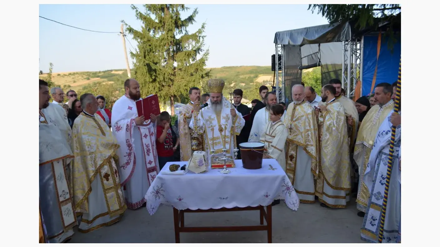 După slujba de resfinţire a urmat Sfânta Liturghie, oficiată în apropierea locaşului de cult.