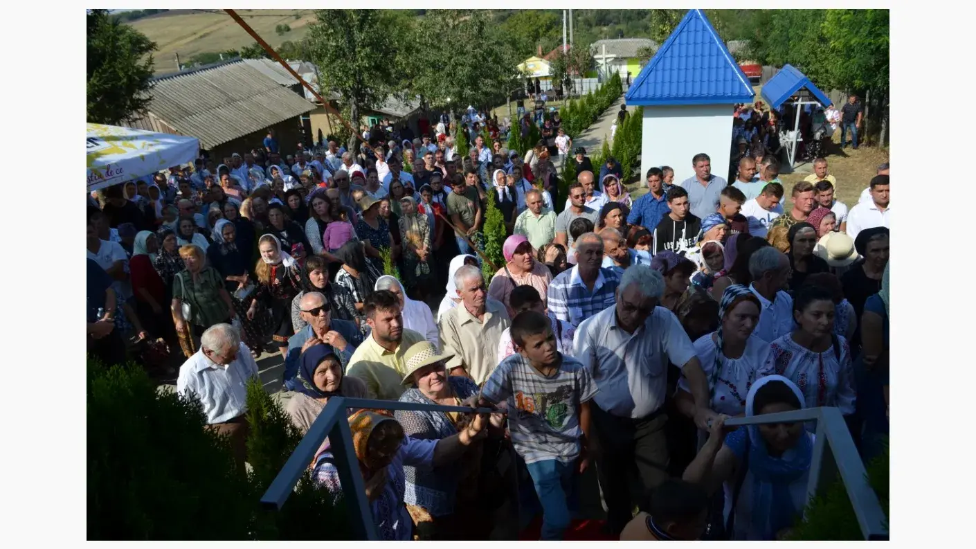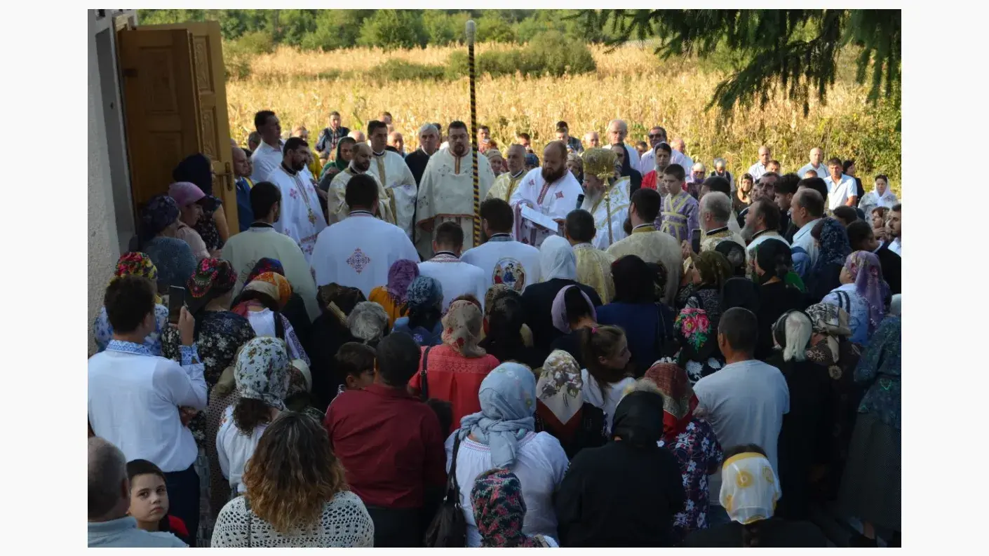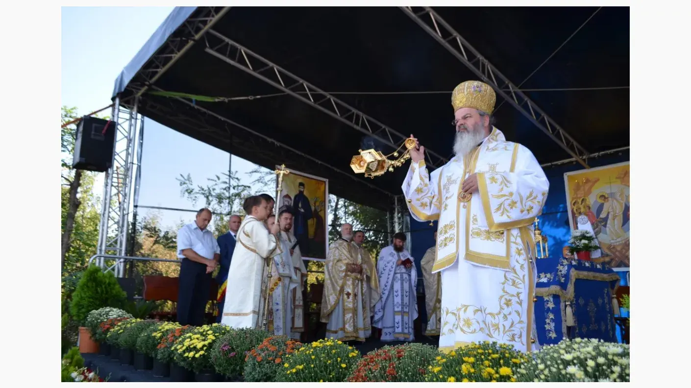După slujba de resfinţire a urmat Sfânta Liturghie, oficiată în apropierea locaşului de cult.
