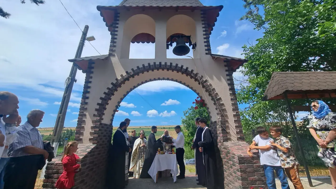 Cu prilejul slujirii în Parohia Rădăești, Părintele Episcop Ignatie a sfințit și noua clopotniță a bisericii parohiale.