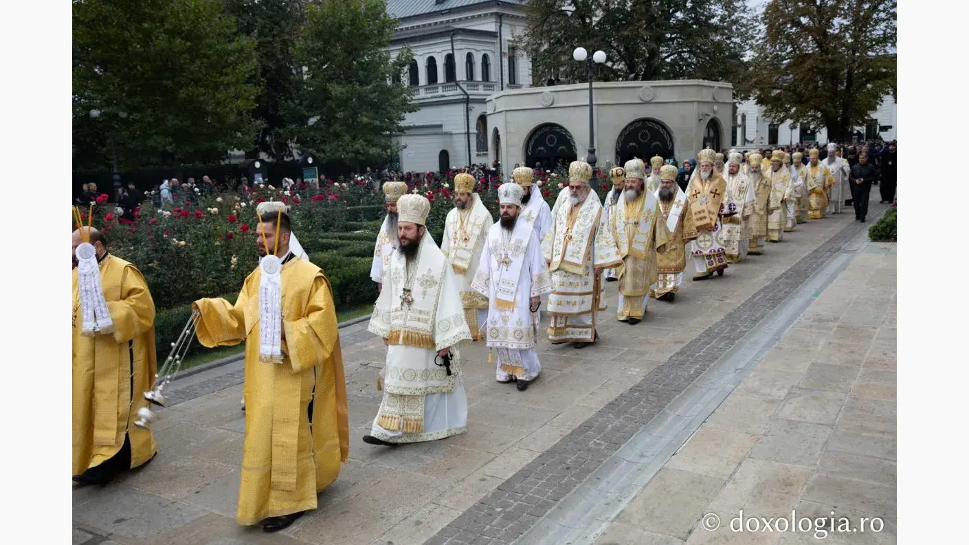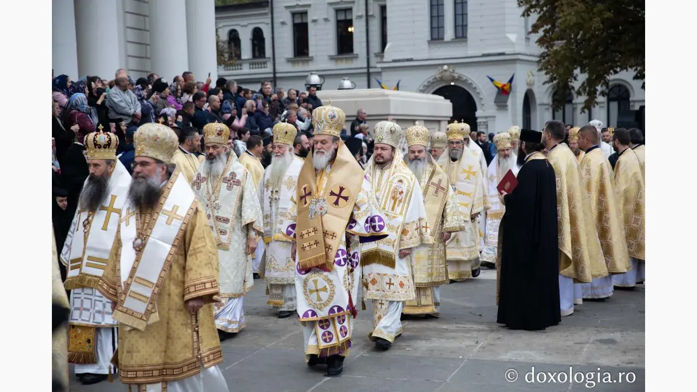 Slujba săvârșită în cinstea Sfintei a fost prezidată de Înaltpreasfinţitul Părinte Gheorghios, Mitropolit de Kitrus, Katerini şi Platamonas, iar din soborul de arhierei au mai făcut parte: Înaltpreasfinţitul Părinte Teofan, Arhiepiscopul Iaşilor şi Mitropolitul Moldovei şi Bucovinei, Înaltpreasfinţitul Părinte Naum, Mitropolit de Ruse, Înaltpreasfinţitul Părinte Irineu, Arhiepiscopul Craiovei şi Mitropolitul Olteniei, Înaltpreasfinţitul Părinte Petru, Arhiepiscopul Chişinăului, Mitropolitul Basarabiei şi Exarhul Plaiurilor, Înaltpreasfinţitul Părinte Iosif, Arhiepiscopul Ortodox Român al Europei Occidentale şi Mitropolitul Ortodox Român al Europei Occidentale şi Meridionale, Înaltpreasfinţitul Părinte Teodosie, Arhiepiscopul Tomisului, Înaltpreasfinţitul Părinte Casian, Arhiepiscopul Dunării de Jos, Preasfinţitul Părinte Agathonikos, Episcop de Arusha şi Tanzania Centrală, Preasfinţitul Părinte Qais, Episcop de Erzurum, Preasfinţitul Părinte Ignatie, Episcopul Huşilor, Preasfinţitul Părinte Nicodim, Episcopul Severinului şi Strehaiei, Preasfinţitul Părinte Antonie, Episcop de Bălți, Preasfinţitul Părinte Veniamin, Episcopul Basarabiei de Sud, Preasfinţitul Părinte Vincențiu, Episcopul Sloboziei şi Călăraşilor, Preasfinţitul Părinte Galaction, Episcopul Alexandriei şi Teleormanului, Preasfinţitul Părinte Sebastian, Episcopul Slatinei şi Romanaţilor, Preasfinţitul Părinte Petroniu, Episcopul Sălajului, Preasfinţitul Părinte Nestor, Episcopul Devei şi Hunedoarei, Preasfinţitul Părinte  Ieronim, Episcopul Daciei Felix, Preasfinţitul Părinte Ioan Casian, Episcopul Ortodox Român al Canadei, Preasfinţitul Părinte Nichifor Botoşăneanul, Episcop-vicar al Arhiepiscopiei Iaşilor, Preasfinţitul Părinte Benedict Bistriţeanul, Episcop-vicar al Arhiepiscopiei Vadului, Feleacului şi Clujului, Preasfinţitul Părinte Paisie Lugojeanul, Episcop-vicar al Arhiepiscopiei Timişoarei, Preasfinţitul Părinte Damaschin Dorneanul, Episcop-vicar al Arhiepiscopiei Sucevei și Rădăuților, și Preasfinţitul Părinte Timotei Sătmăreanul, Arhiereu-vicar al Episcopiei Ortodoxe Române a Maramureşului şi Sătmarului.