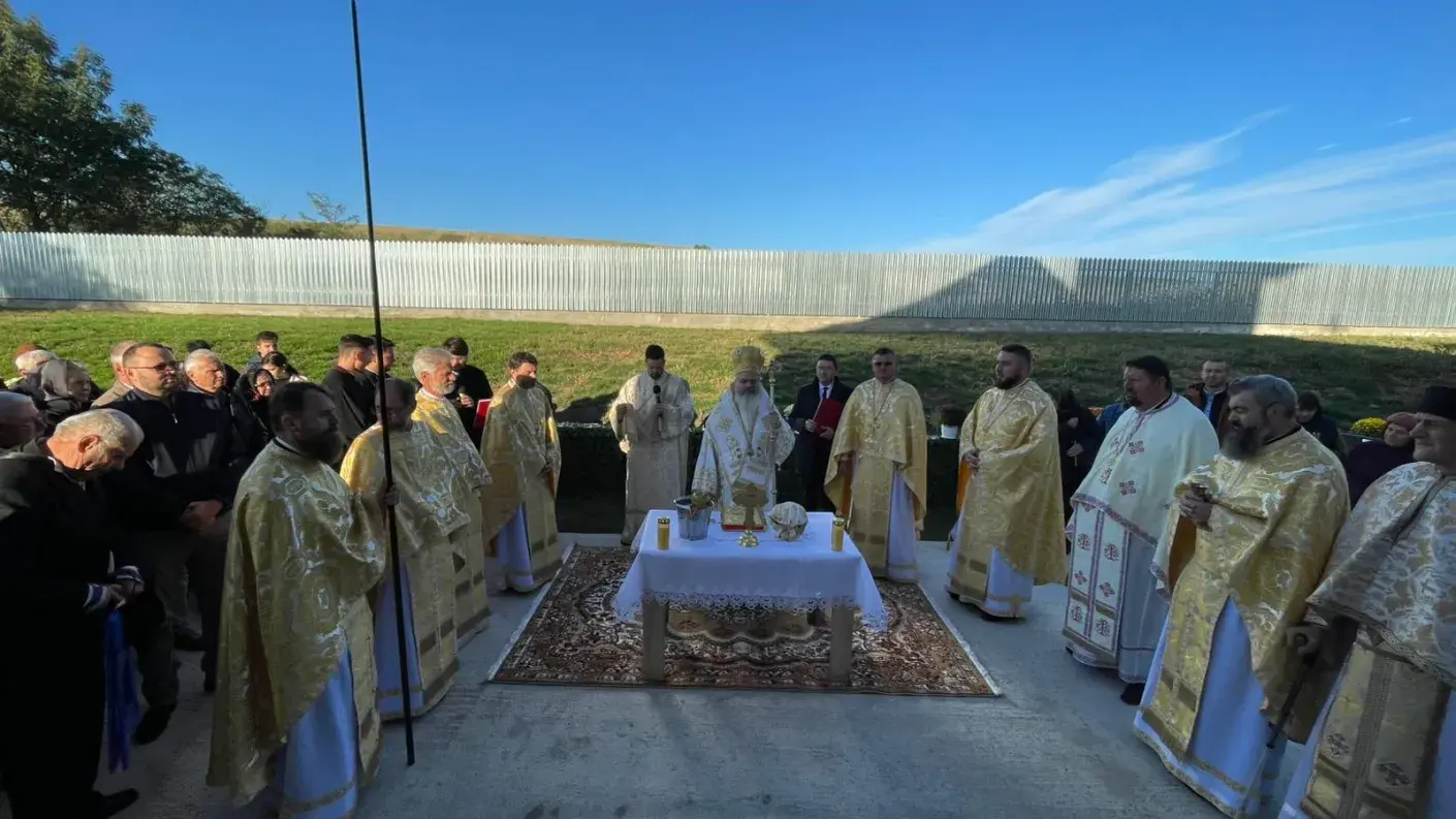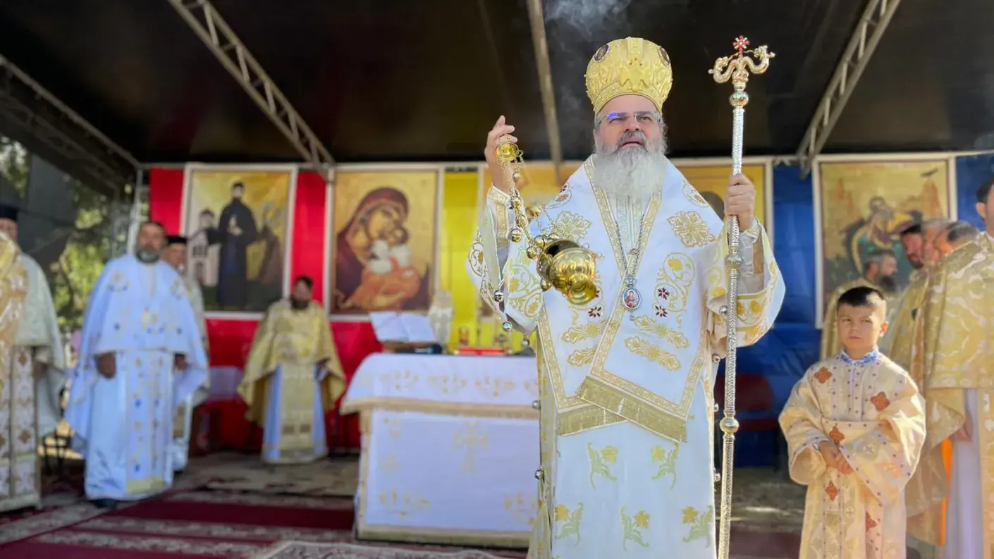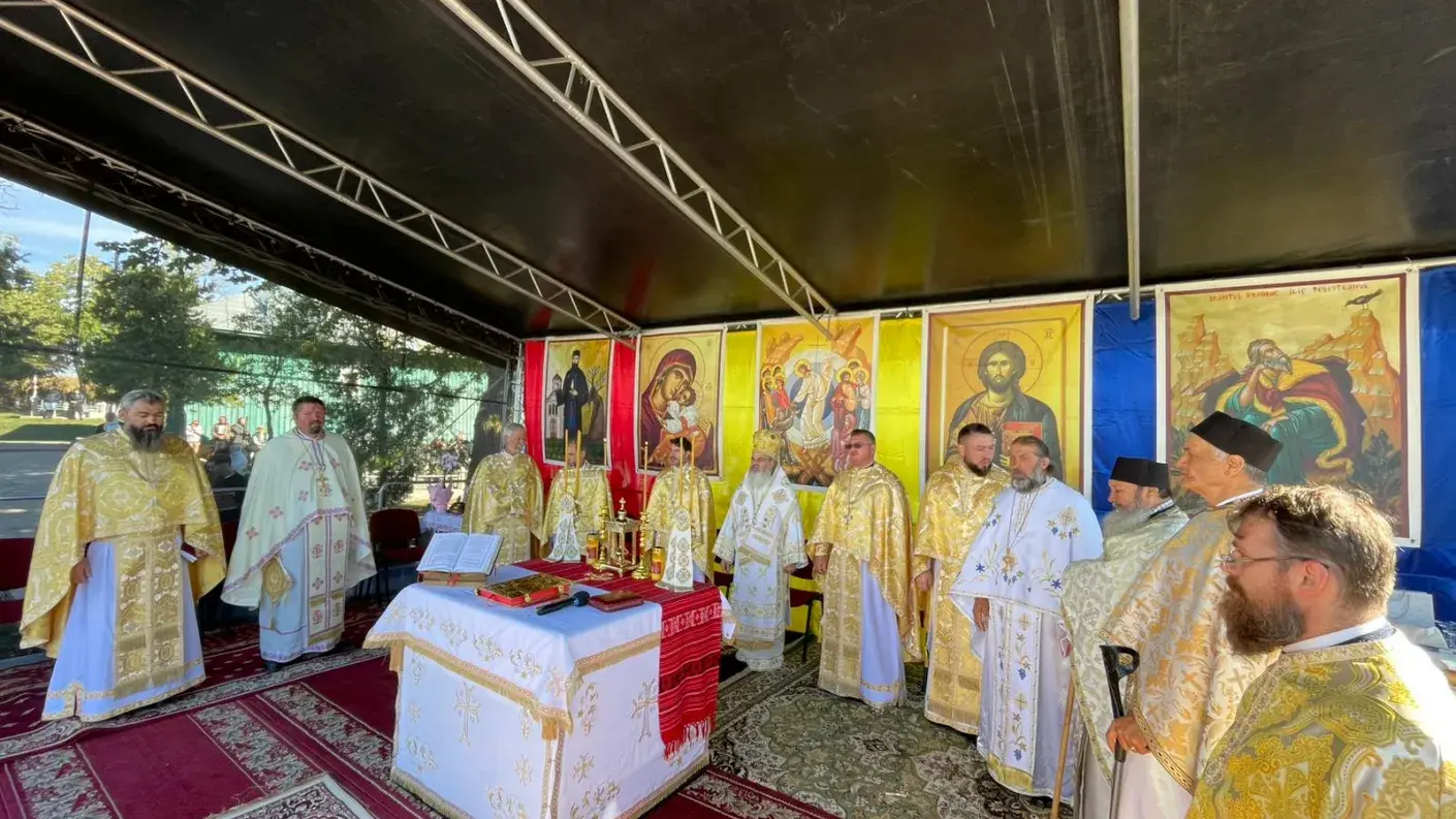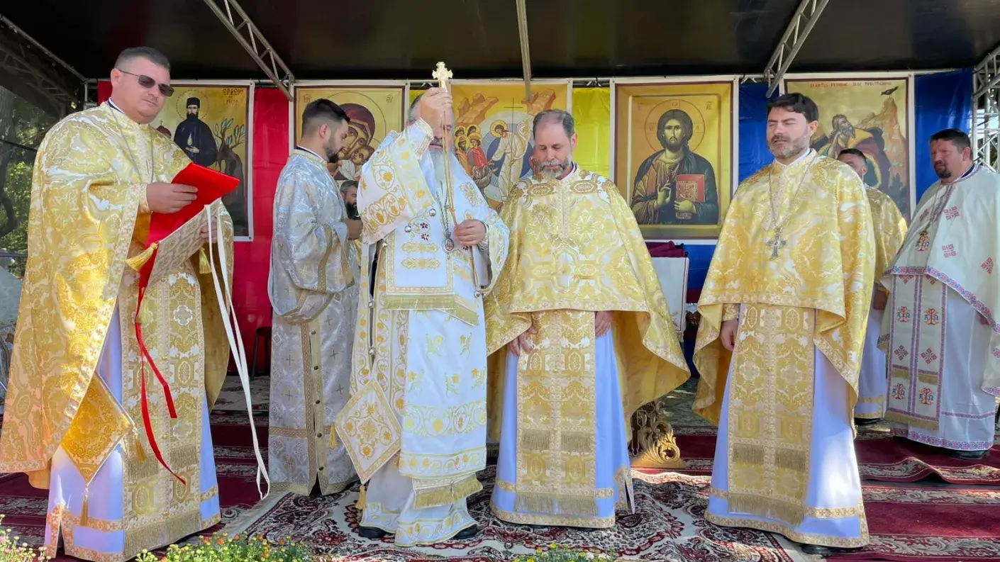 Sfânta Liturghie a fost oficiată în aer liber, în apropierea bisericii nou sfințite.