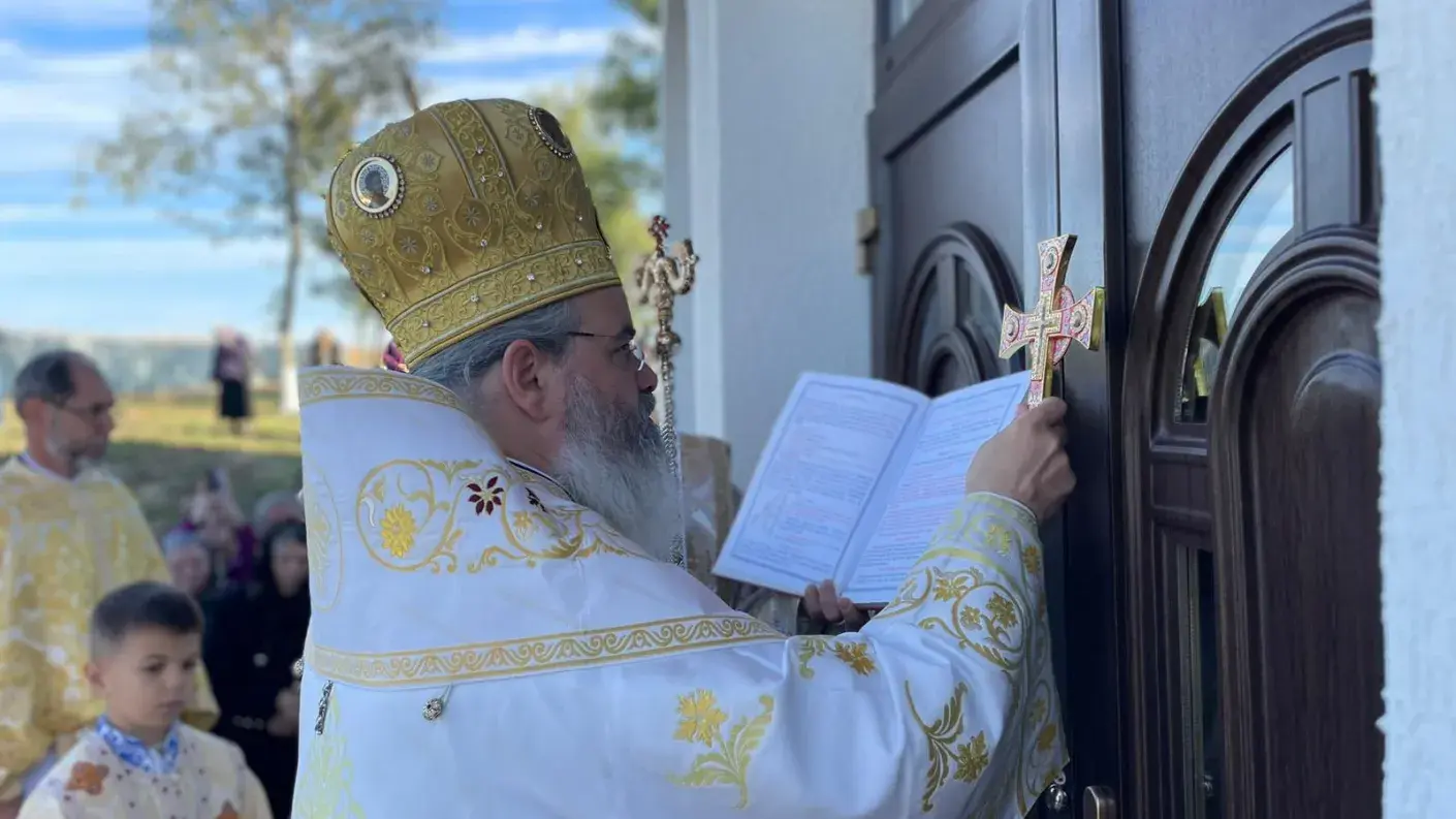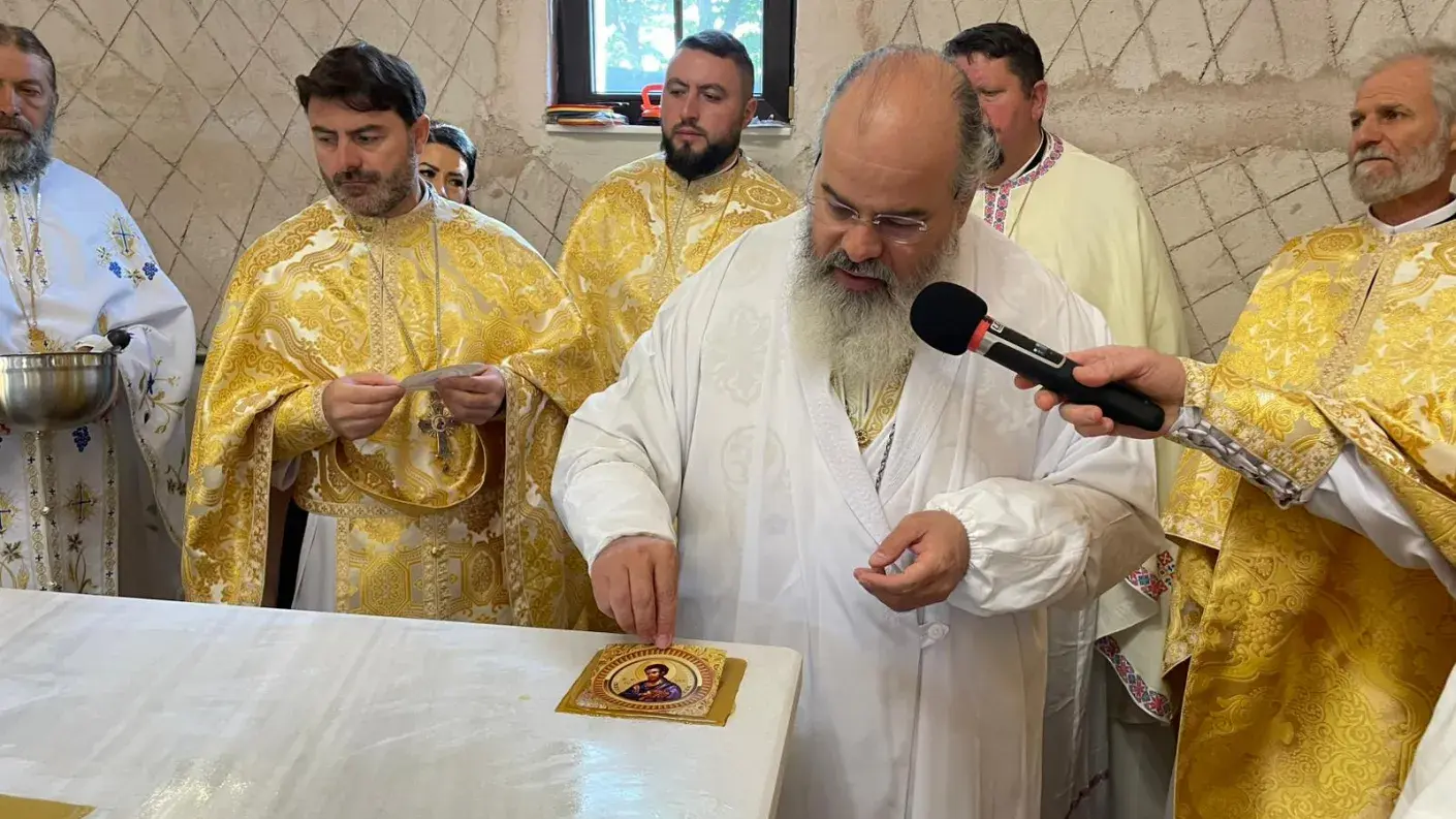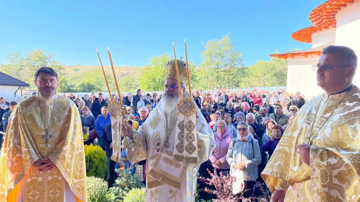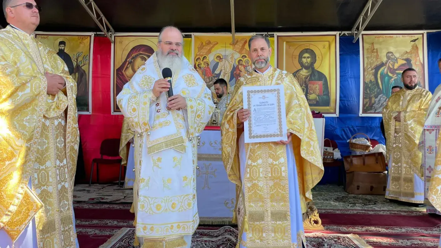 Sfânta Liturghie a fost oficiată în aer liber, în apropierea bisericii nou sfințite.