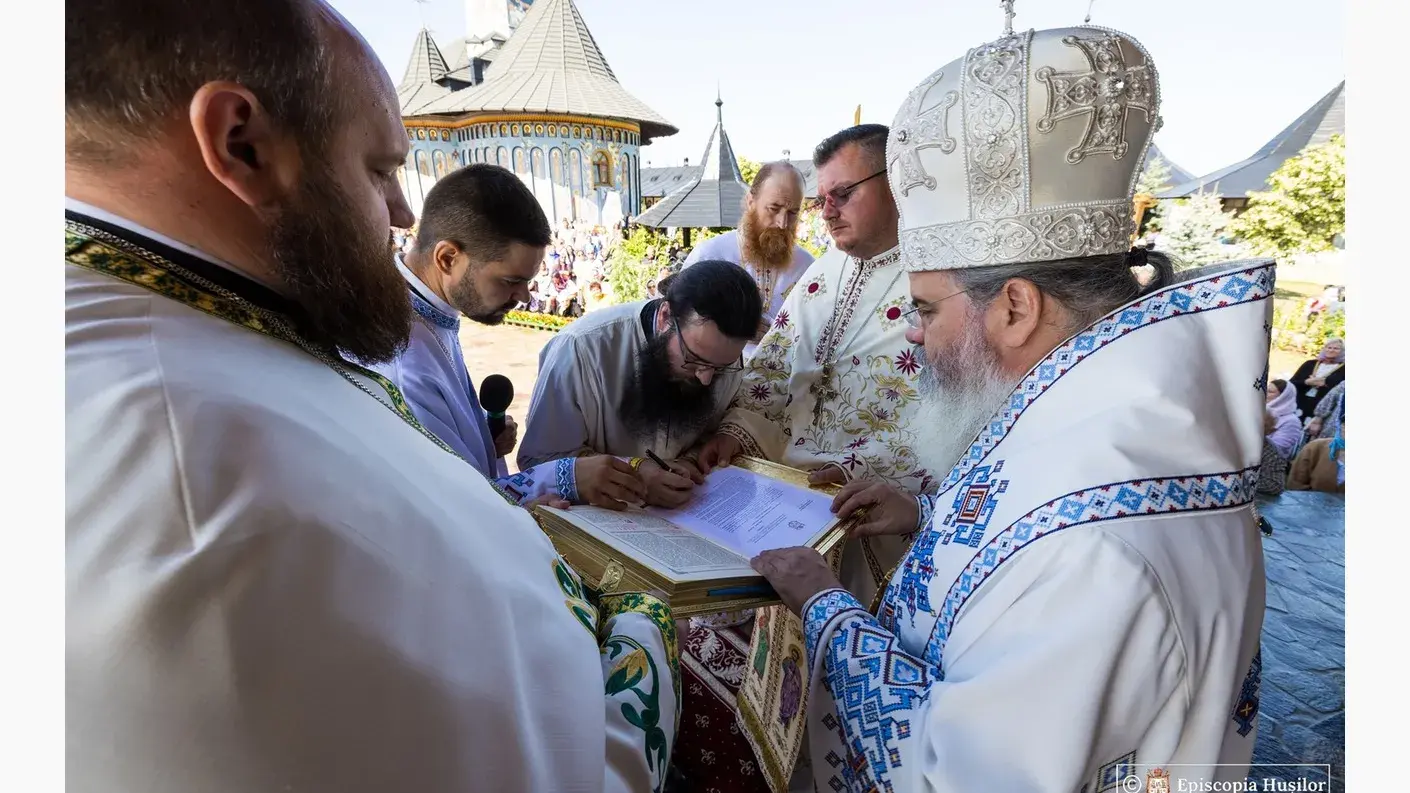 Din soborul slujitorilor au făcut parte părinții consilieri și inspectori de la Centrul Eparhial Huși și părinți protopopi, alături de părintele exarh Zaharia Curteanu, starețul sfântului așezământ.
