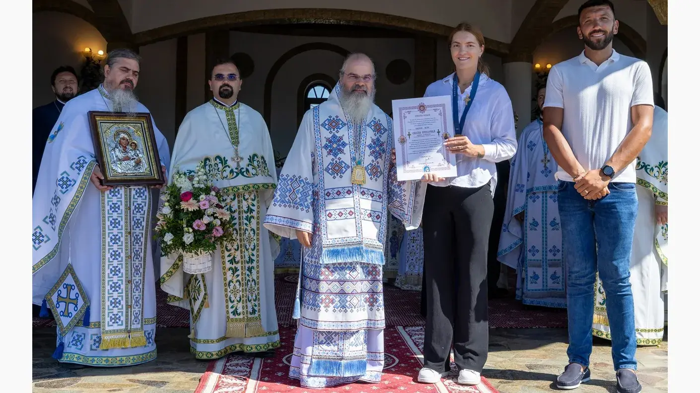 La finalul Sfintei Liturghii, într-o atmosferă de sărbătoare, Părintele Episcop Ignatie a oferit, în semn de prețuire, canotoarei Adriana Adam, medaliată cu aur, la Jocurile Olimpice de la Paris 2024, la proba opt rame cu cârmaci, Crucea eparhială „Maria Costachi”, a Episcopiei Hușilor, un premiu în bani și o icoană a Maicii Domului.