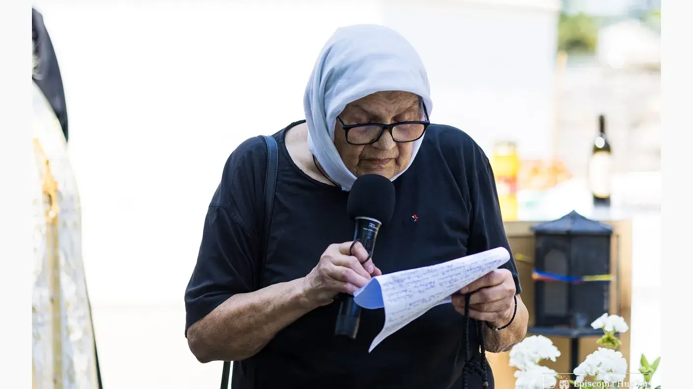 Părintele Mina străjuiește aici, în curtea noastră a Episcopiei Hușilor, și dă în continuare mărturie despre ceea ce el a mărturisit cu atâta bucurie și lipsă de frică.