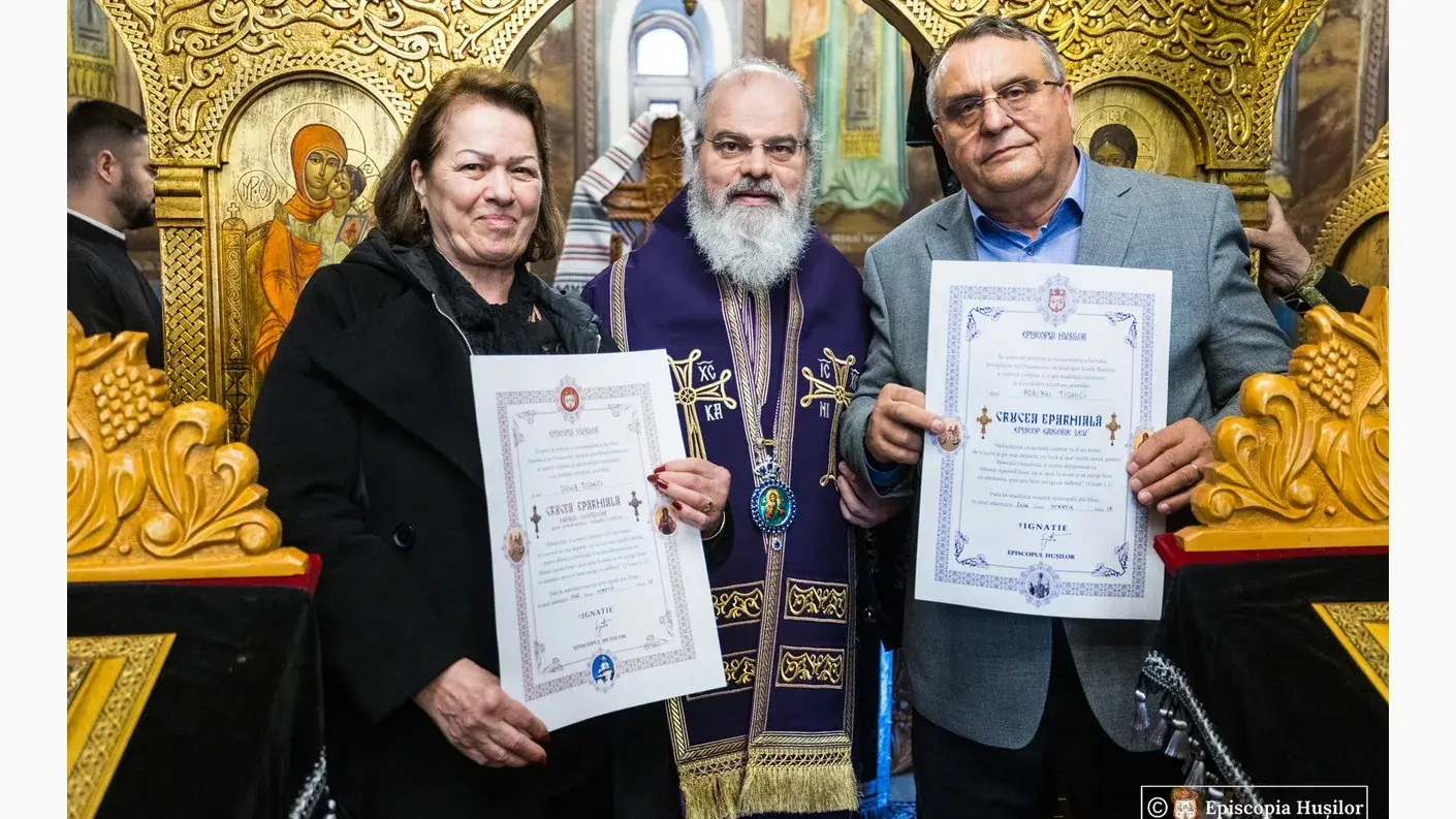 Tot în același cadru festiv, Ierarhul Hușilor a oferit, în semn de recunoștință, familiei Adrian și Doina Tighici, Crucea eparhială „Episcopul Grigorie Leu”, respectiv Crucea eparhială „Maria Costachi” pentru tot sprijinul pe care l-au oferit, de-a lungul timpului, acestei comunități parohiale, precum și altor lăcașuri de cult din cadrul Eparhiei.