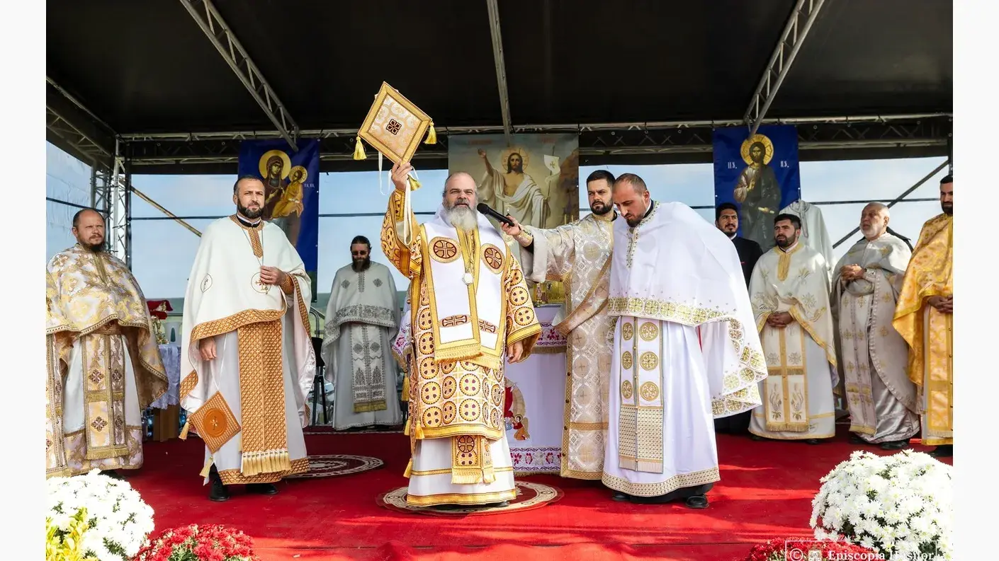 După slujba de sfințire, a urmat Sfânta Liturghie, oficiată în apropierea lăcașului de cult.