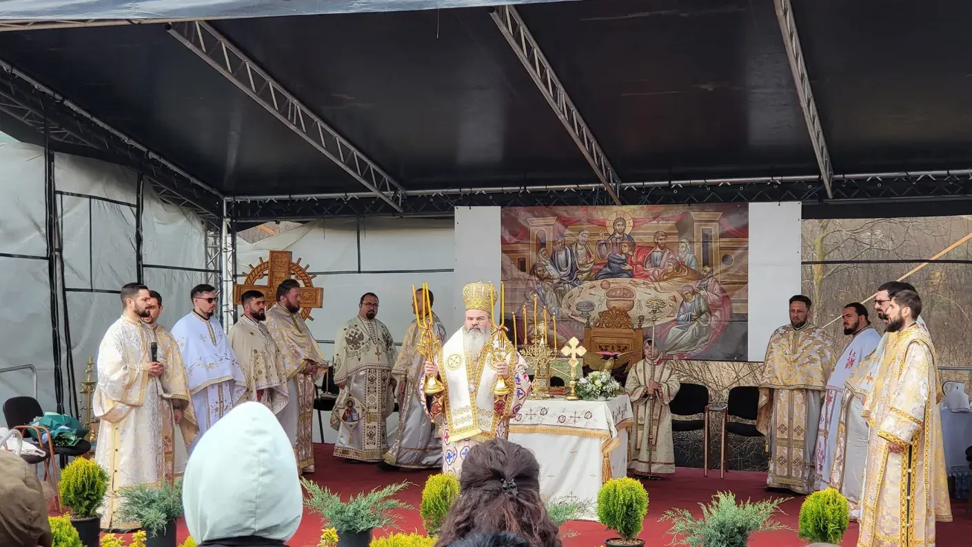 După slujba de sfințire a urmat Sfânta Liturghie, oficiată în apropierea locaș de cult. Răspunsurile liturgice au fost date de membrii Grupului psaltic „Sfânta Mare Muceniță Chiriachi” al Catedralei Episcopale din Huși.