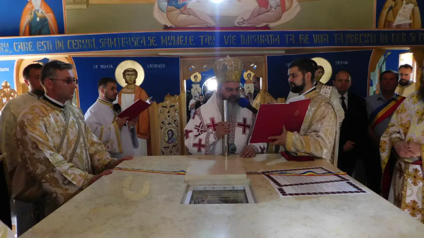 După slujba de resfinţire, pe un podium amenajat în proximitatea sfântului locaş, a fost săvârşită Sfânta Liturghie.
